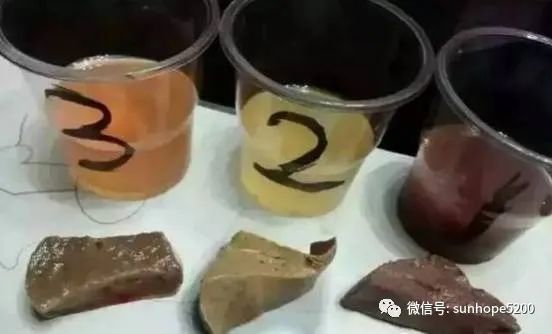 先来看一个实验:1号杯是加菁肽,2号杯是高度白酒,3号杯是水,同时放入大小一样的新鲜猪肝,浸泡半天后拿出来,1号杯用我们的菁肽泡过的还是新鲜的,2号杯白酒泡的已经肝硬化了,3号杯用水泡的也有点膨胀了,而且我观察了2号杯白酒泡的我放进去的时候就马上慢慢变白了,可见酒对肝脏的伤害有多大,