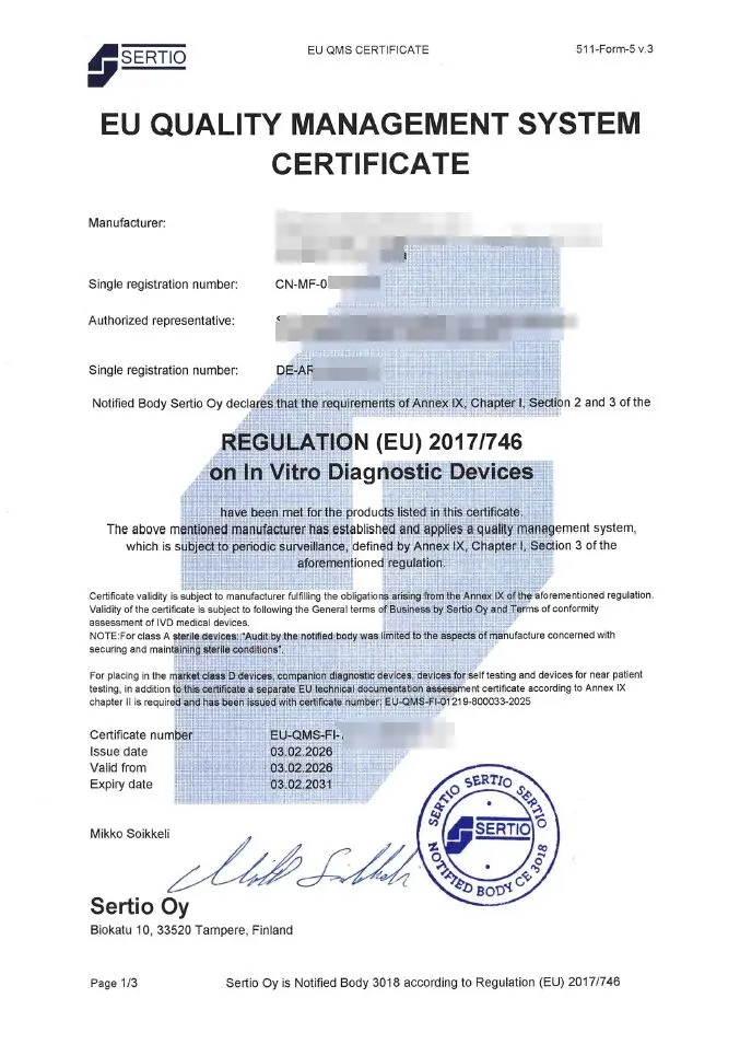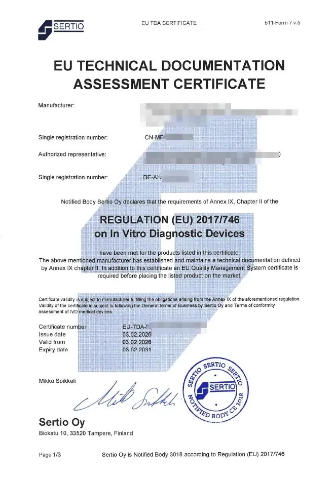 该客户企业在IVD领域深耕多年,专注于体外诊断产品的研发、制造、销售与服务,是行业领先佼佼者。当前欧盟IVDR认证流程越发严苛、审核标准不断提高,其认证涵盖技术文件评审、质量管理体系审核、现场核查等多个核心环节,行业平均认证周期远超此次项目耗时。