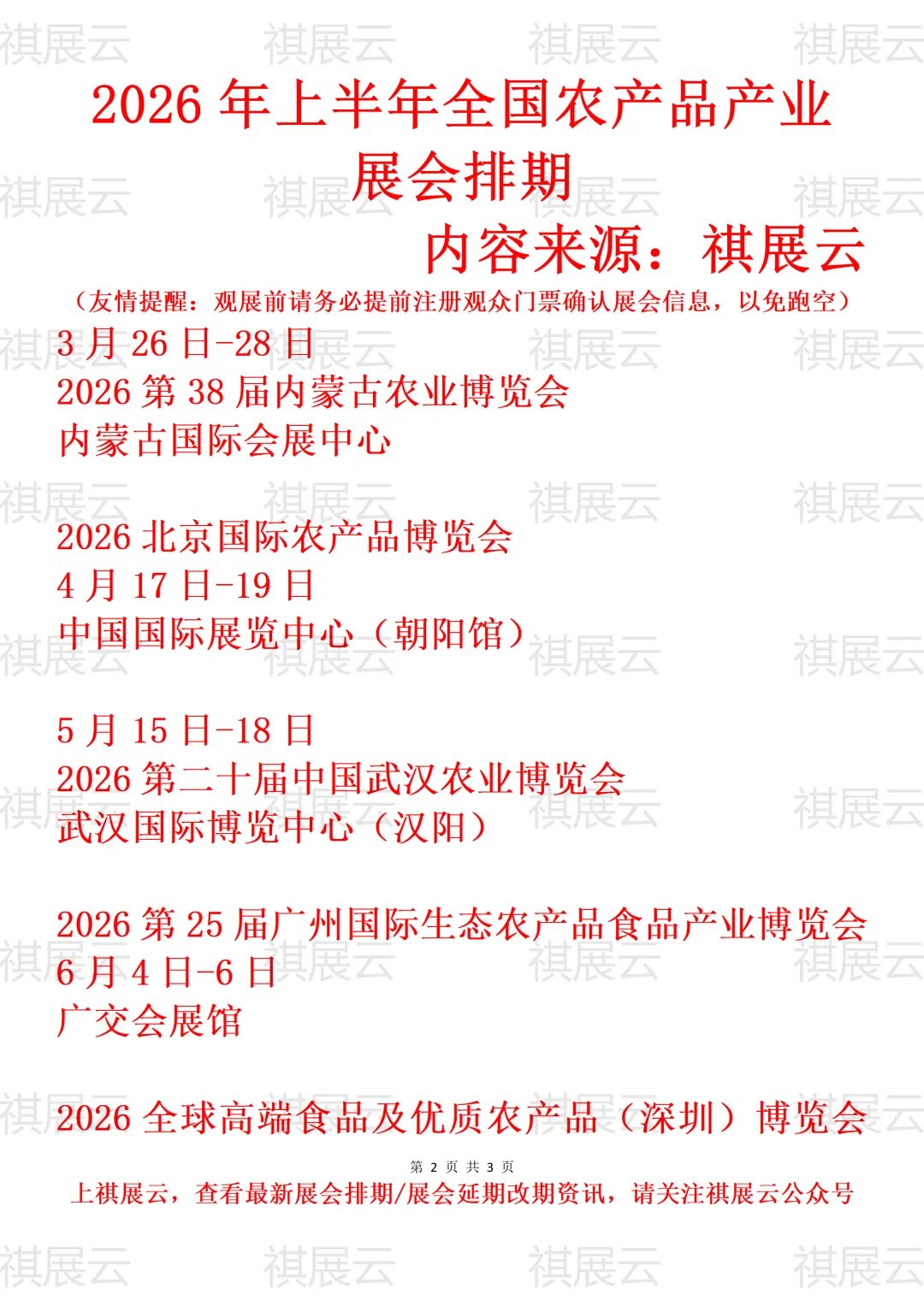会展资讯丨全国农业(生态农产品)展会2026年上半年展会时间表