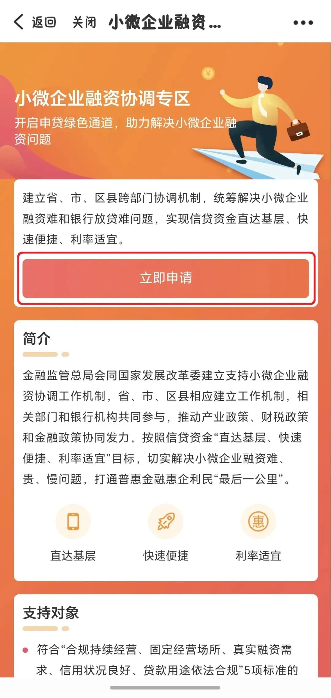 为充分激发小微企业市场活力,合力破解小微企业融资难题,近日,金融监管总局、国家发展改革委联合建立支持小微企业融资协调工作机制,按照信贷资金“直达基层、快速便捷、利率适宜”目标,打通普惠金融惠企利民“最后一公里”。