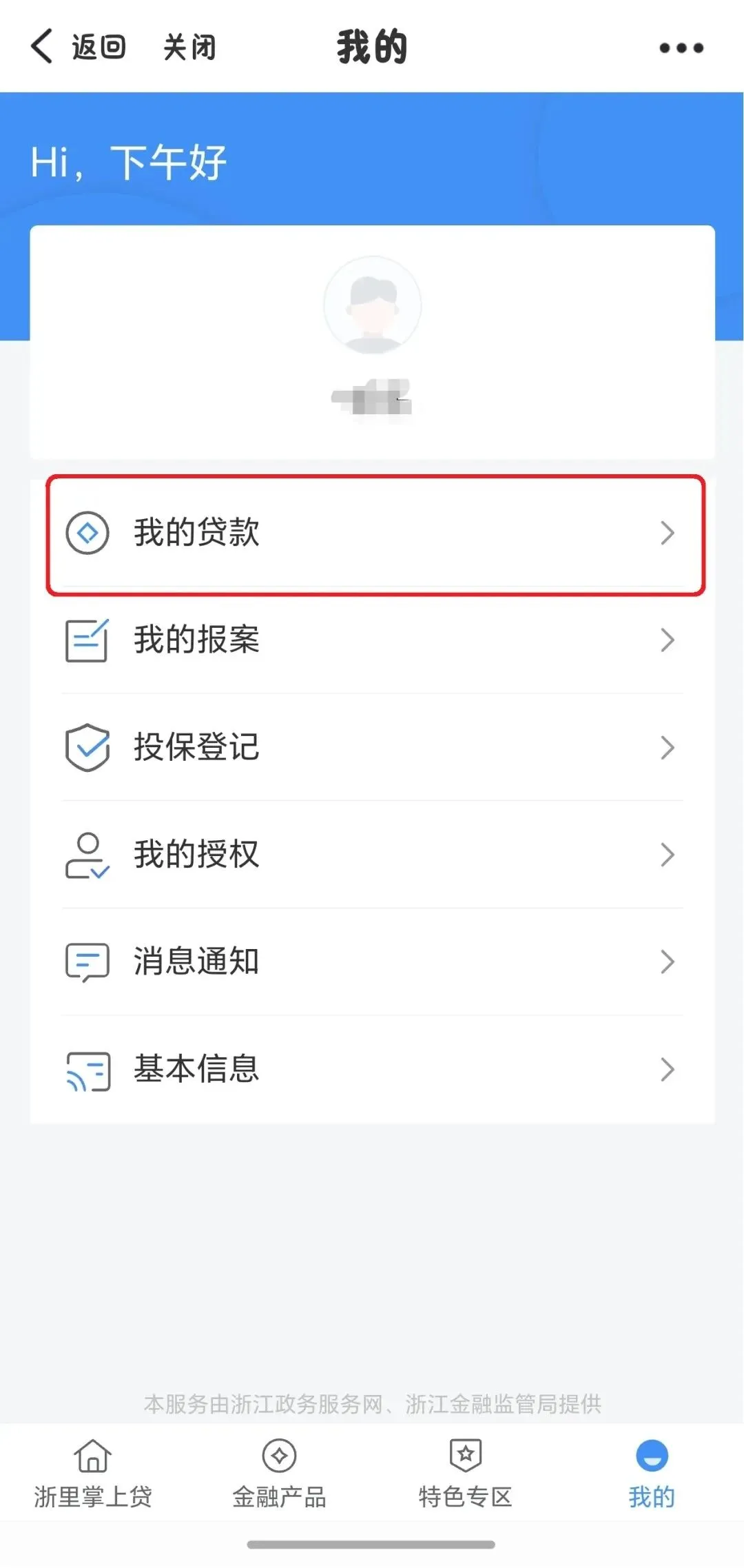 4.等待审核,可以点击“浙里金融”主页右下角“我的”进入“我的贷款”页面查询结果。