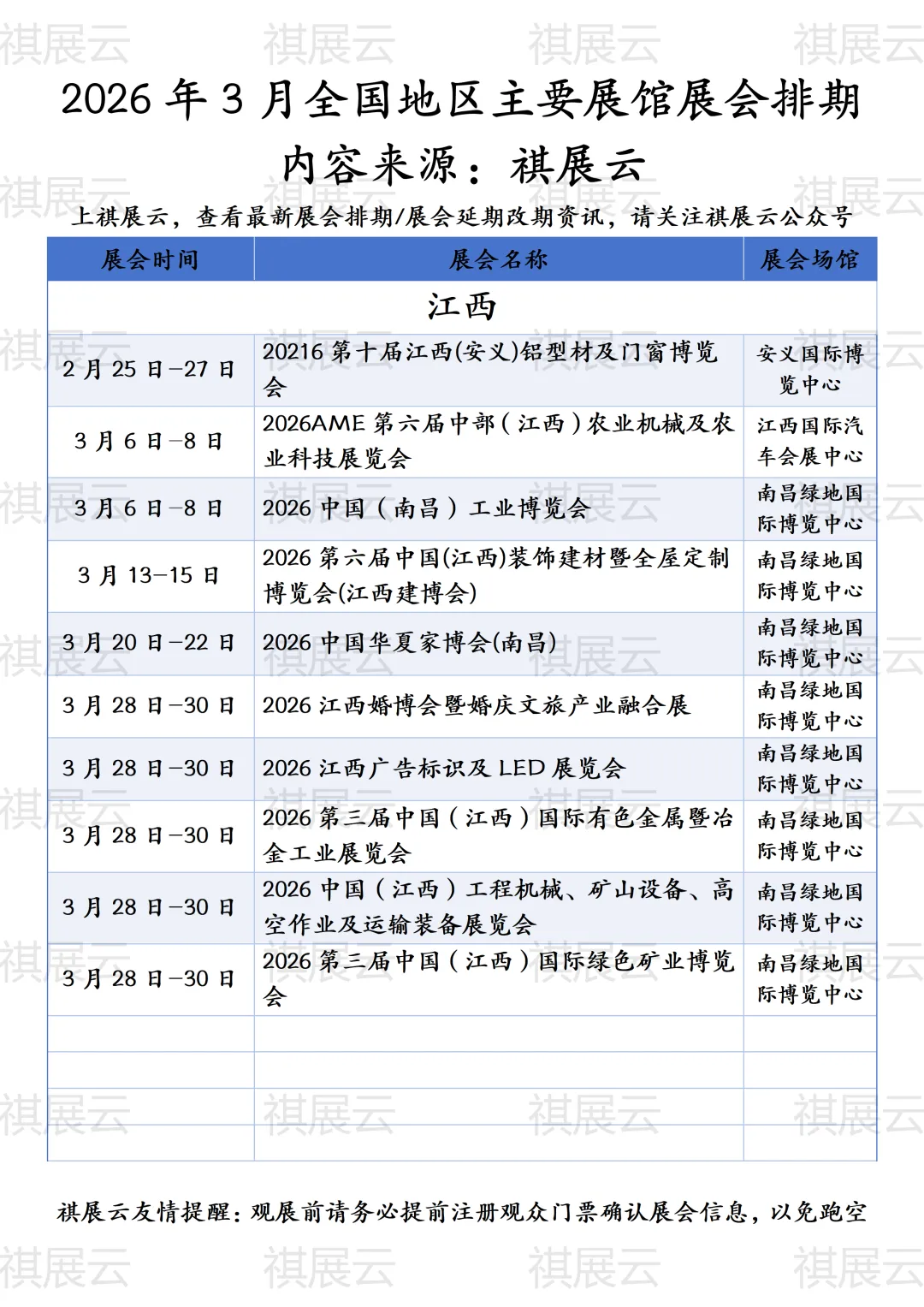 会展资讯丨江西展会2026年3月展会排期表