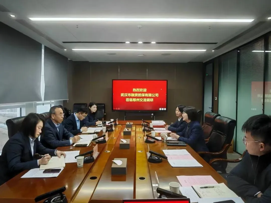 2月4日,武汉市融资担保有限公司(以下简称“武汉融担”)总经理邓正国率队赴鄂州担保开展业务调研与座谈交流。鄂州担保董事长余韵及相关人员参加交流座谈。