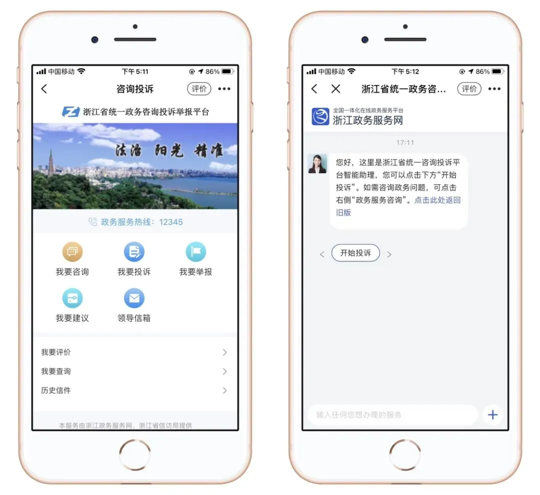 浙江省统一政务咨询投诉举报平台——“永不打烊的官方咨询投诉中心”随时接收你的投诉,并且第一时间推送反馈结果。