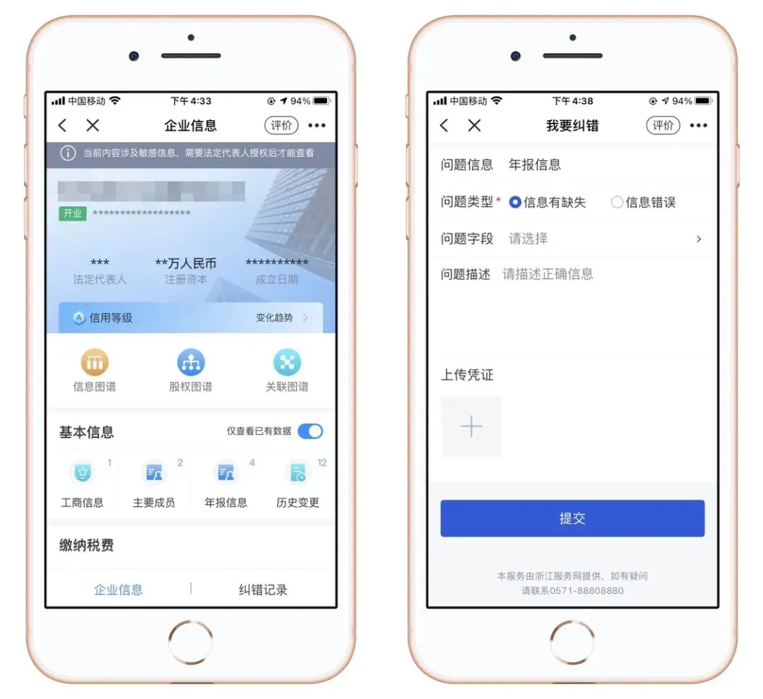 提供企业基本信息、缴纳税费、司法监管各类信息在线查询,还可在线进行纠错,查询纠错记录。