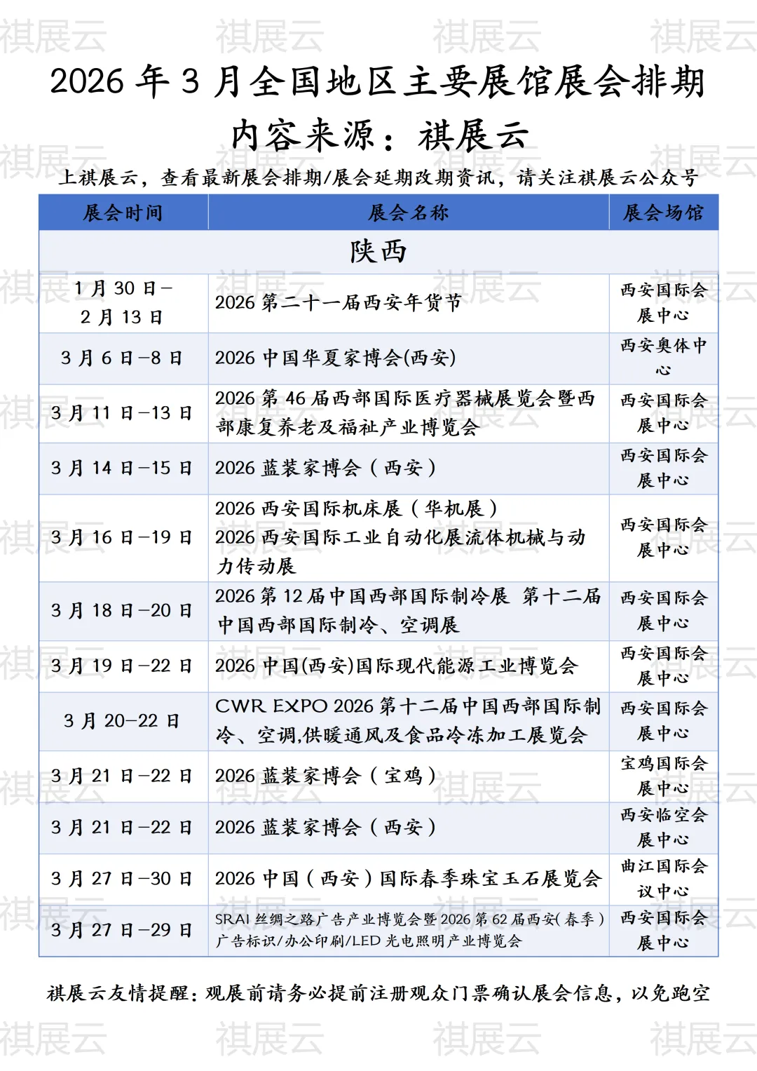 会展资讯丨陕西展会2026年3月展会排期表