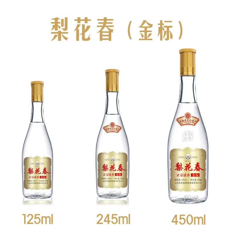 传承非遗工艺和千年文化品质的梨花春酒在“进化”的过程中始终坚持聚焦高品质、高性价比、高饮用口感的产品属性,此次全面升级推出的梨花春(金标)作为该系列金色品质的标杆酒,分别上市了125ml、245ml和450ml三种规格,人性化满足消费者不同场景的使用需求,能够给经销商在终端更多的操作空间。