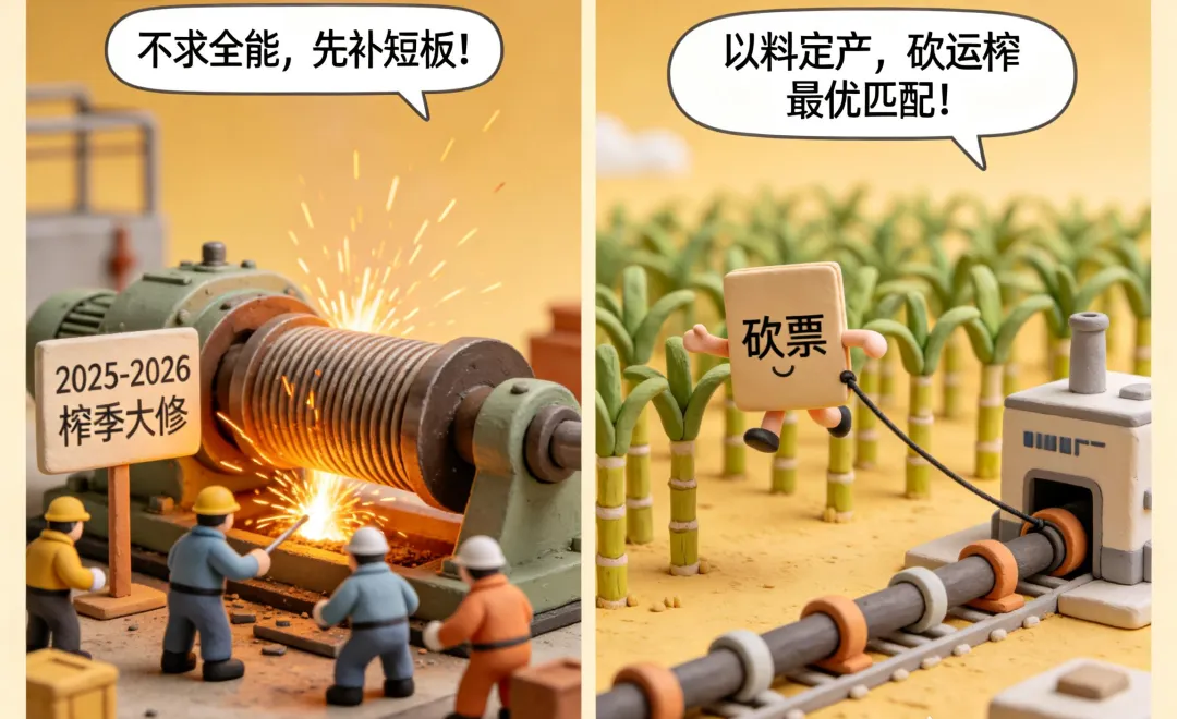 要创造稳定流动,就要消除波动,管好瓶颈。农垦糖业集团在25-26榨季前更换榨辊、大修锅炉,就是为了补齐最短板!至于拉动,在糖业更多体现为“以料定产”,通过砍票管理,实现砍、运、榨的最优匹配!