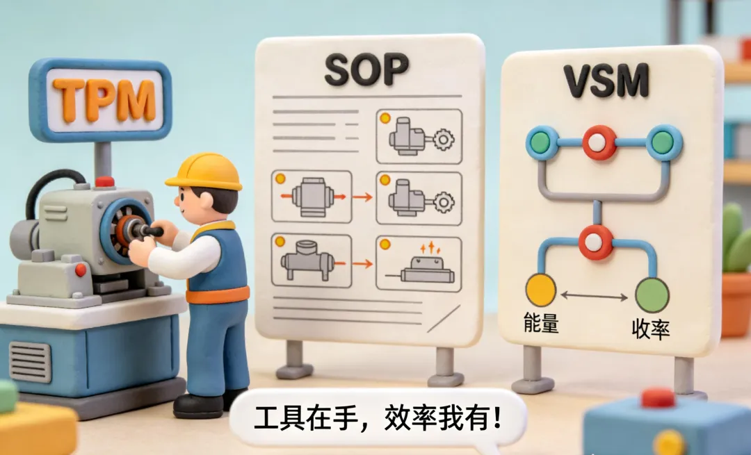 TPM全面生产维护、标准化作业SOP、价值流图VSM、5S与可视化、根本原因分析RCA、精益六西格玛……这些都是我们提升效率、降低波动的利器!