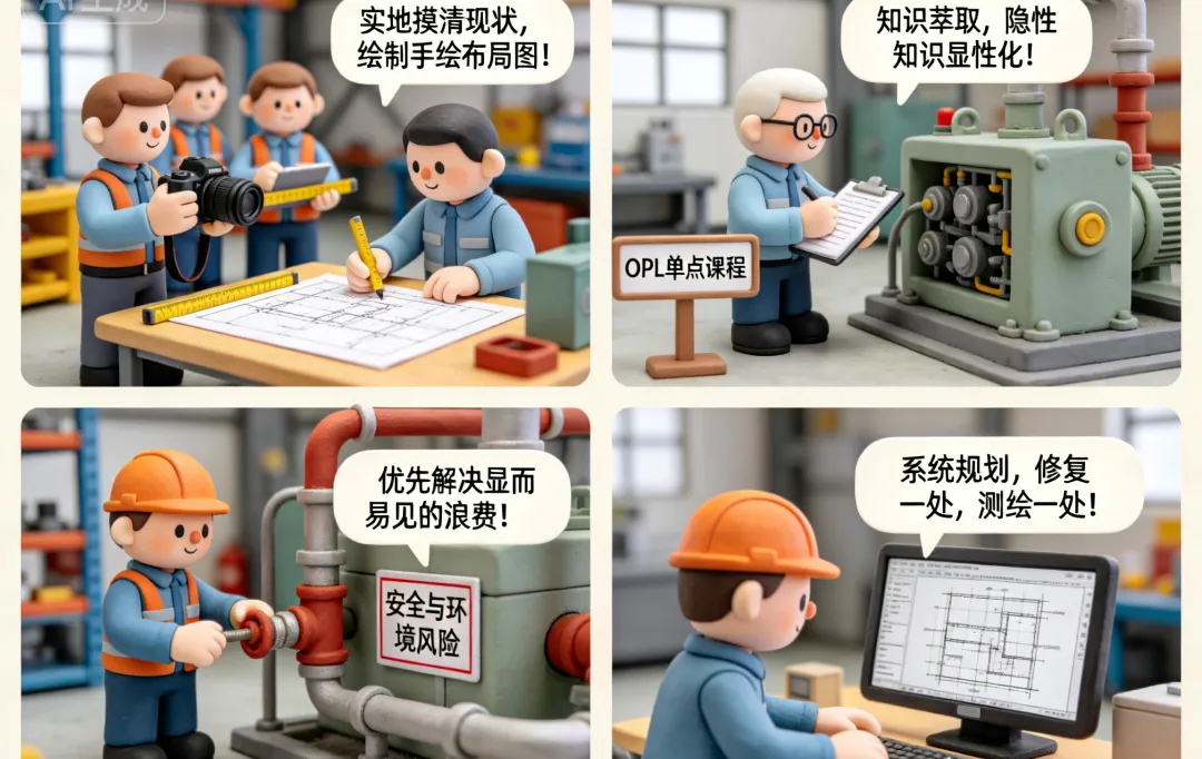 我们的精益之路,要技术与人力双线并行!从现场测绘、知识萃取,到解决显而易见的浪费,再到系统性规划,每一步都离不开团队的努力!