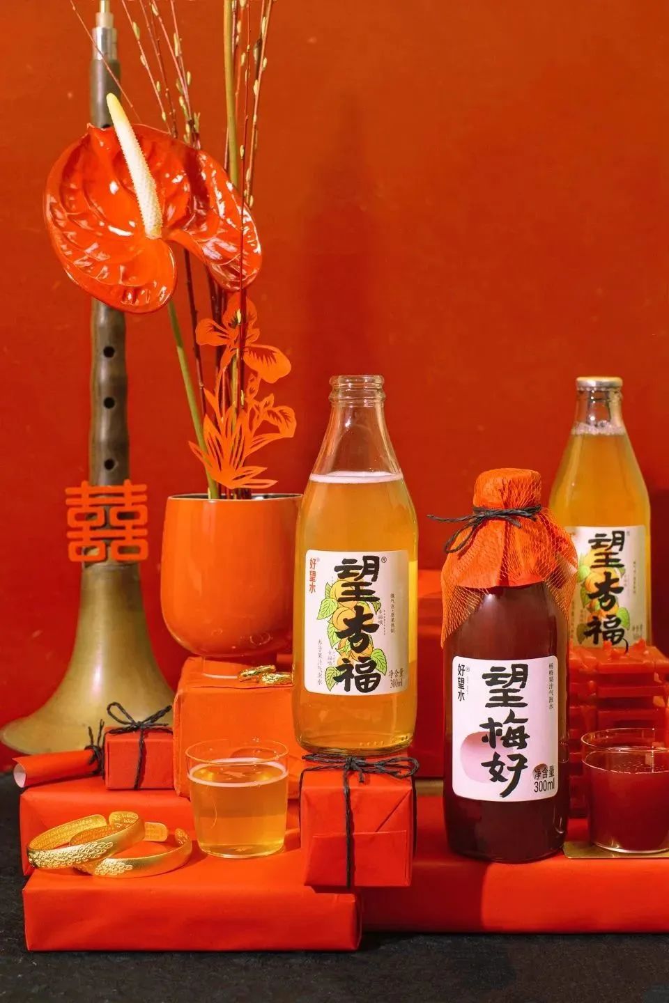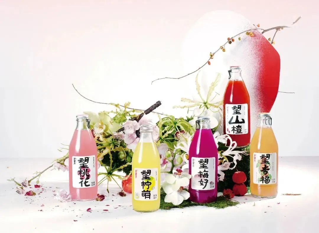且不同于常见的罐装或是塑料瓶装,好望水的「望」系列以玻璃瓶装为主,瓶身设计简约,以果汁天然的色系为配色,整体呈现出鲜明高级的质感。文雅的国风彩绘,搭配水墨笔法写出的产品名,延续了东方美学的韵味,成为品牌独一无二的标识。