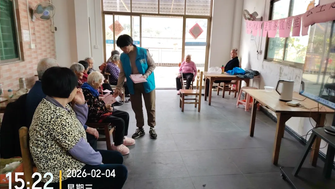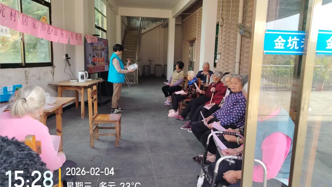 随着老龄化程度加学深,为弘扬中华民族尊老敬老的传统美德,民实提升安置区老年人的生活质量。2月4日下午,金坑村安置区开展了居家养老服务政策宣传活动。聚焦助餐配餐与上门生活照料服务,文体娱乐、日间托管、长护险、平安通、辅助租赁、居家适老化银岭安康等服务内容。通过宣传提高政策知晓度,确保社区老年人能够应享尽享政策福利,在熟悉的居家环境中安度晚年。