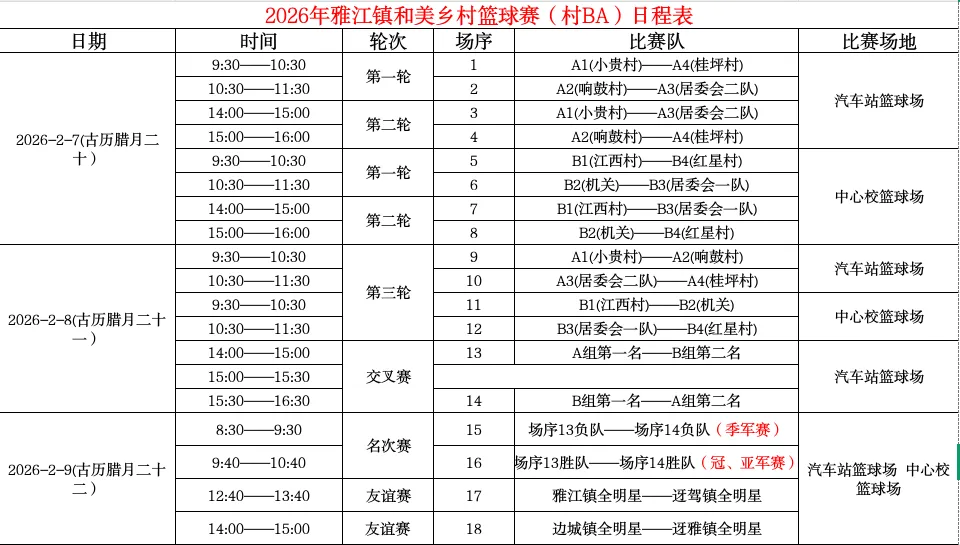 活动设置两大核心板块,亮点纷呈。农特产品展销区将开设30个标准展位,集中展示展销渝黔边区特色年货、优质农产与非遗文创,现场可品尝非遗美食、特色小吃,一站式备齐年味好物,让市民在家门口买到地道山货、感受非遗魅力。同步举办和美乡村篮球比赛,8支队伍将在雅江中心校篮球场、汽车站篮球场展开初赛、复赛、决赛比拼,以热血赛事点燃全民健身热情,展现边区群众昂扬风貌。
