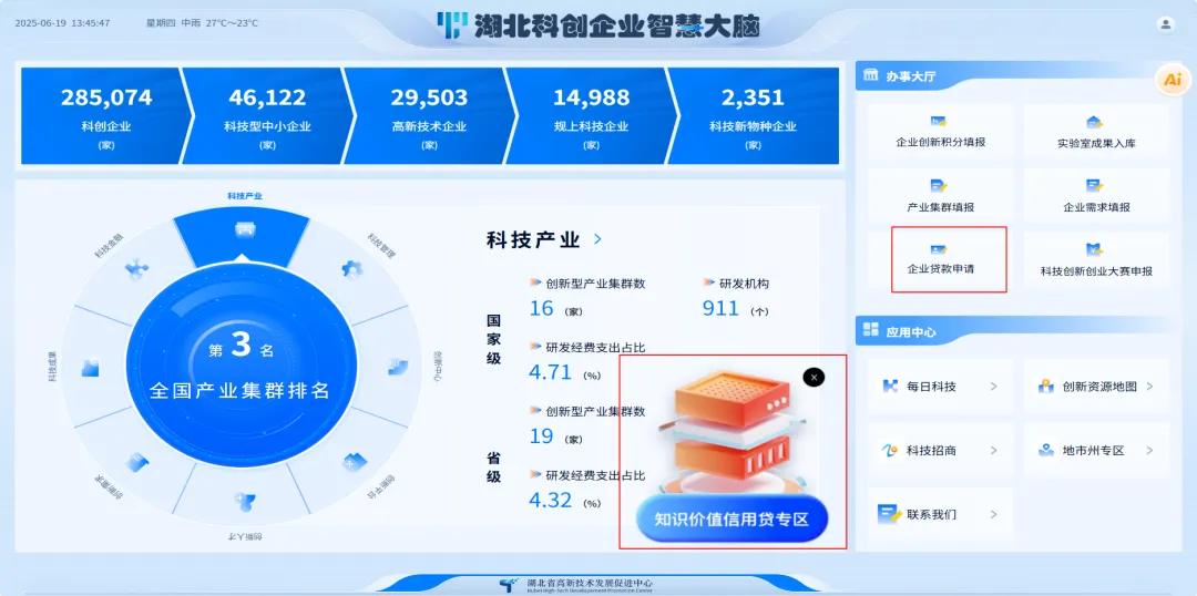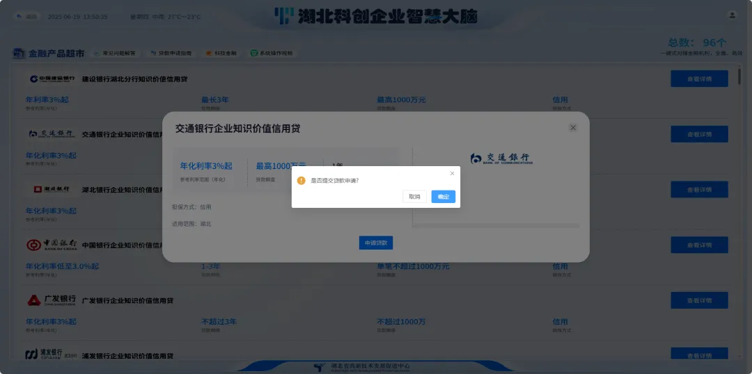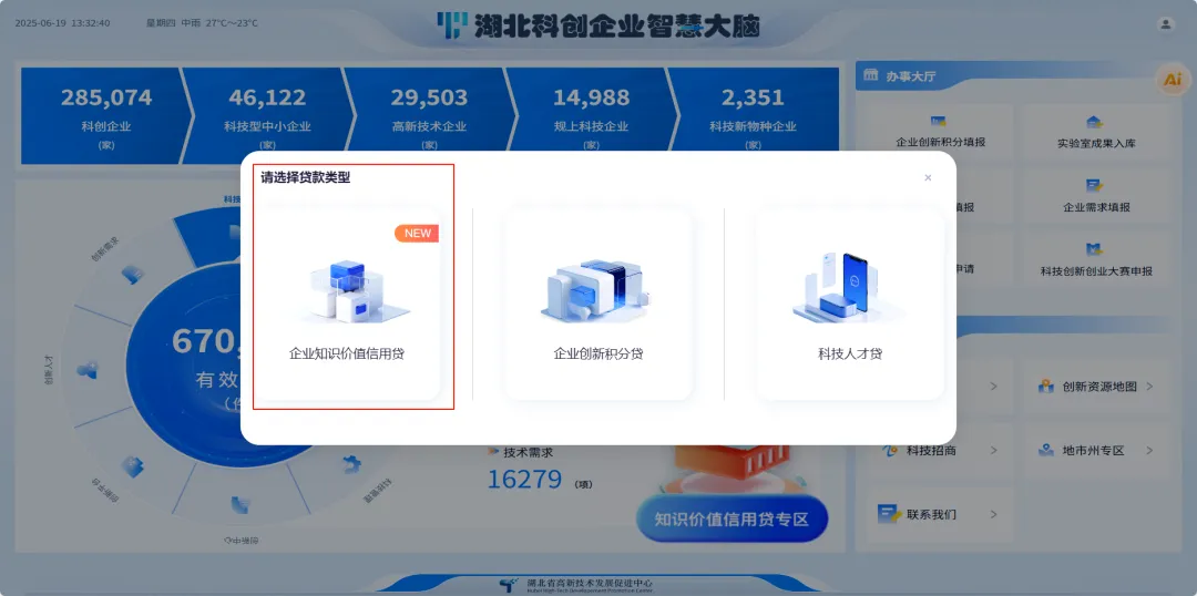 点击导航栏“企业知识价值信用贷款”专区,浏览可选金融产品。