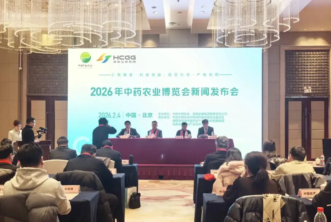 2026年2月4日,首届中药农业博览会新闻发布会在北京顺利举行。发布会宣布,这一聚焦中药农业全产业链的国家级行业盛会,定于2026年4月10 日至12日在湖南国际会展中心(芒果馆)举办。中国中药协会常务副会长吴宪,中国中药协会中药材种植养殖专业委员会名誉主任委员王卫权,湖南会展集团党委书记、董事长马永忠等出席发布会。