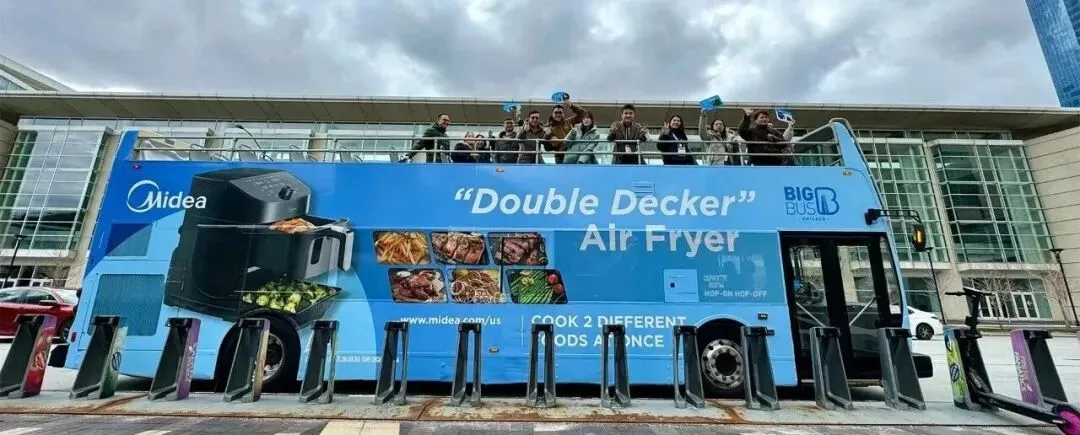 就在创意“难产”的时候,美国芝加哥当地的双层巴士进入了团队视野,于是,公关团队果断放弃了单纯的功能宣讲,选择将双层巴士与双腔空气炸锅形成强关联,打造一场堪称神来之笔的营销战役:“双层巴士巡游”,他们希望通过这一事件将“双层,让美味和效率都加倍”的直观生活联想植入用户心智,而不是“技术领先”的空洞口号。