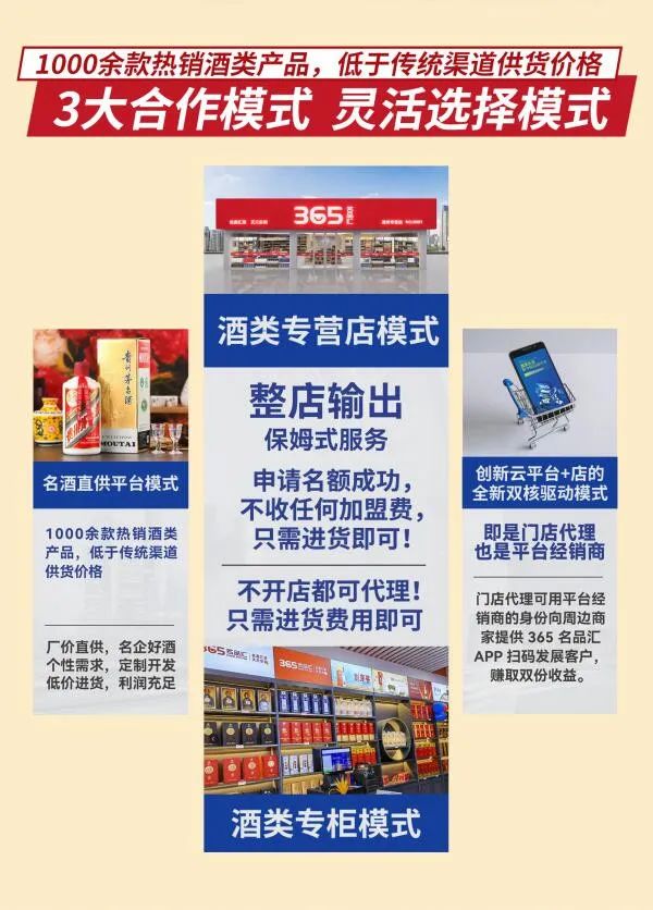旗下酒水产品,都是厂家直供,产品的价格更加的优惠,也让店铺获得的营收空间更加的可观起来。而且产品的销售渠道广阔,结合线上与线下的营销模式,给顾客带去方便的购买模式。