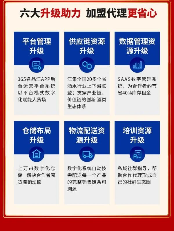 同时逢年过节的时候,人们也会选择酒水购买,以及送亲人和朋友。365名品汇的葡萄酒代理,就不愁市场问题。