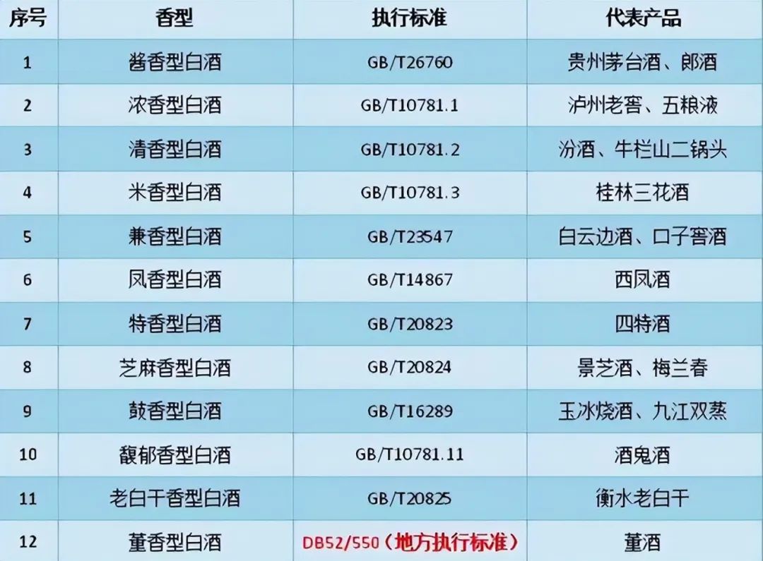 以董酒为代表的董香型白酒执行标准也属于地方标准,云南的小曲清香型白酒也同属于该标准。