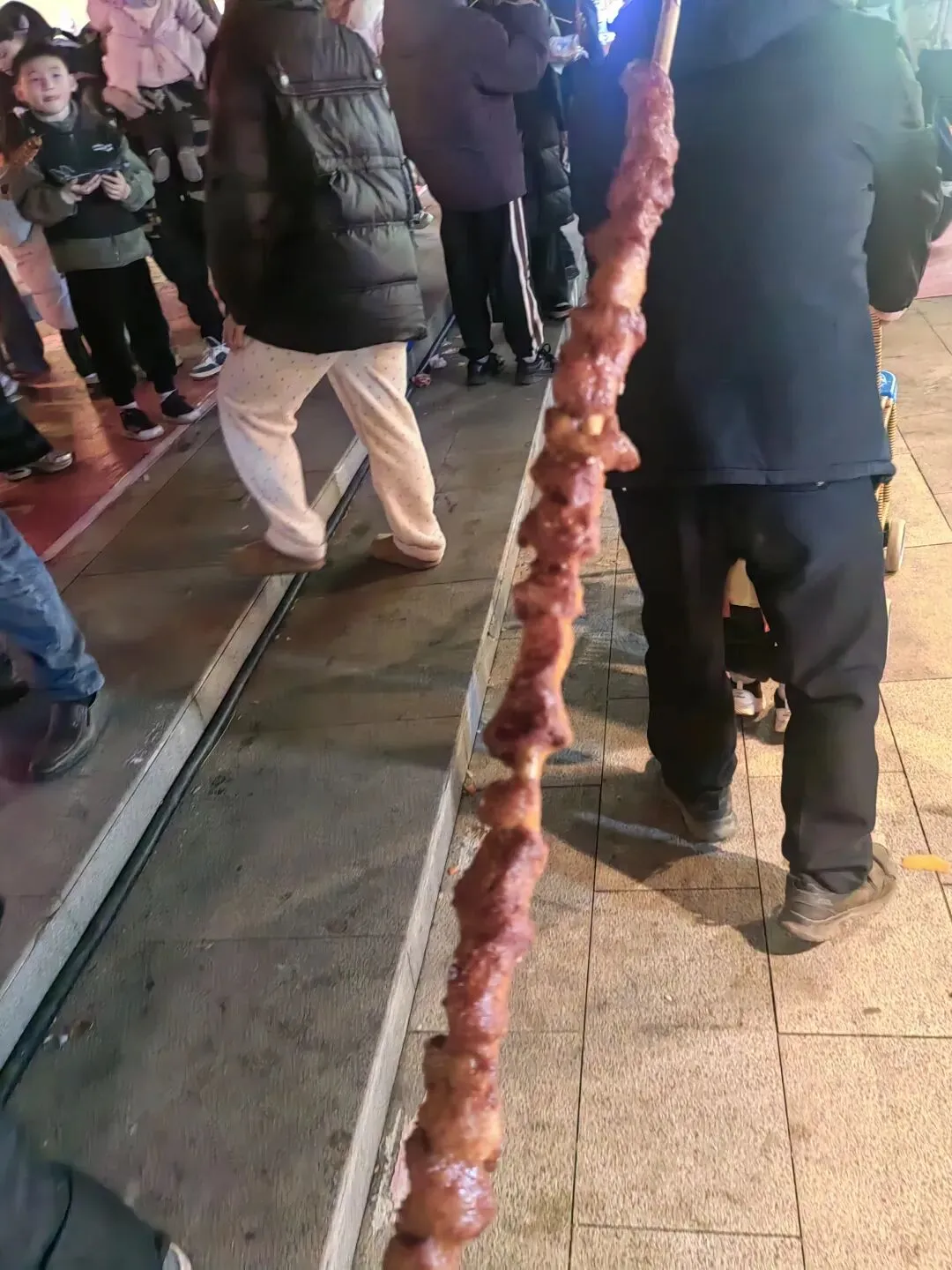 大肉串是几个年轻新疆人在卖,边烤边跳舞,生意挺好,一米肉串也挺惹人注目,一路举着走,好多人都在看,也有人问价格,就是说实话,味道不怎么样,还没有50多块钱吃的自助烤串好吃。吃了一半,撸下来装着,准备回去再加工一下。