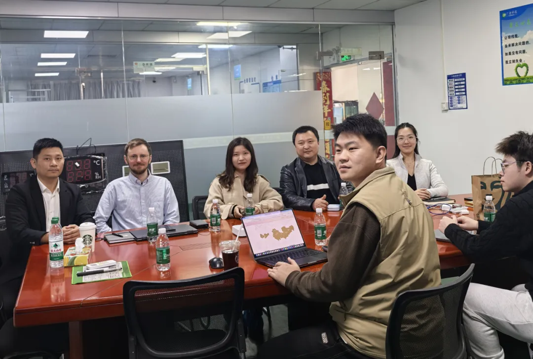 洽谈中,攀攀科技负责人王胜攀首先向德国客人全面介绍了公司发展概况与电子价签产品核心优势,展现了企业在智能零售领域的研发实力与市场布局。随后,陈程和李凯滨聚焦技术核心,用专业且通俗的语言详解电子价签的通信原理、网络配置逻辑及整体解决方案亮点,针对客人提出的海外零售场景应用需求,结合物联网适配等专业知识,现场给出了可落地的技术优化方案,赢得了对方的高度认可。