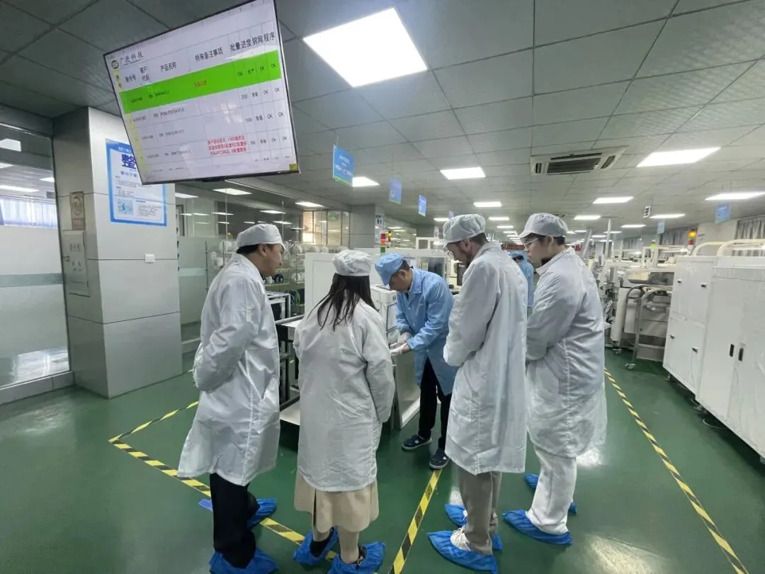 为让德国客人直观感受产品生产实力,合作伙伴广州广进电子科技厂李英武总经理亲自带领一行人参观生产线,细致讲解电子价签从零部件加工、固件烧录到成品检测的全流程工艺,重点介绍了生产过程中的质量管控体系与精细化加工标准,让客人对产品品质保障有了全面认知。