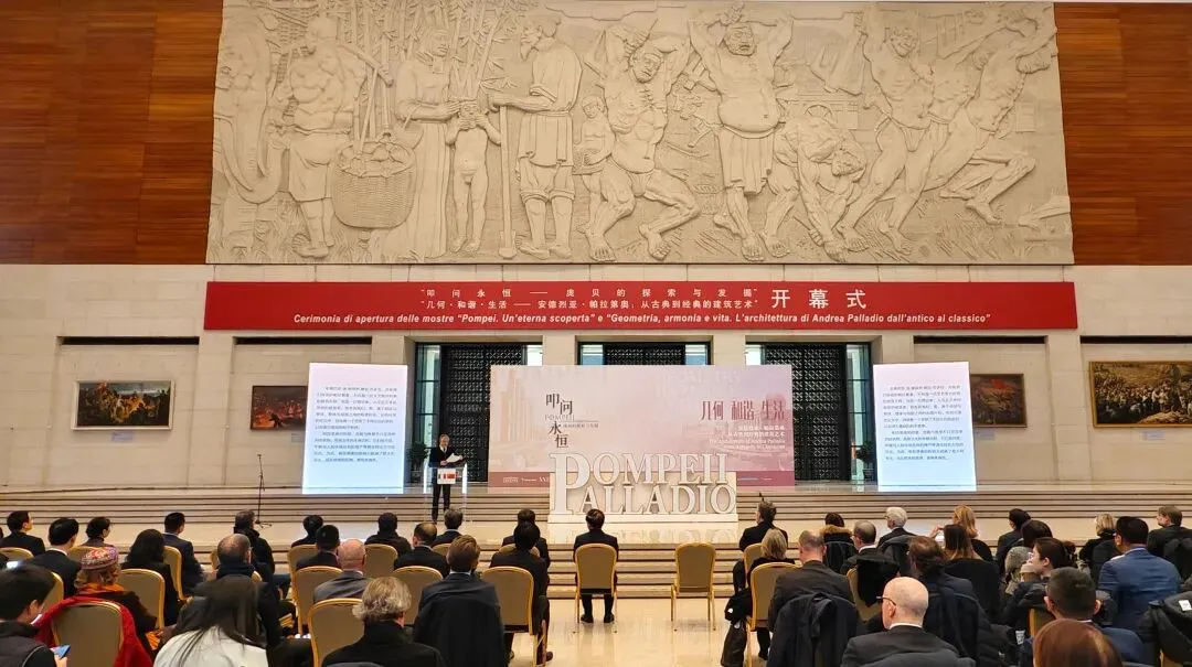 2月3日,“几何•和谐•生活——安德烈亚•帕拉第奥:从古典到经典的建筑艺术”“叩问永恒——庞贝的探索与发掘”两场意大利展览在中国国家博物馆开幕。中国文化和旅游部部长孙业礼、意大利文化部部长朱利、中国国家博物馆馆长罗文利、意大利驻华大使安博思等嘉宾出席开幕式。朱利部长、罗文利馆长发表致辞,中意两国文化部长共同为展览揭幕。