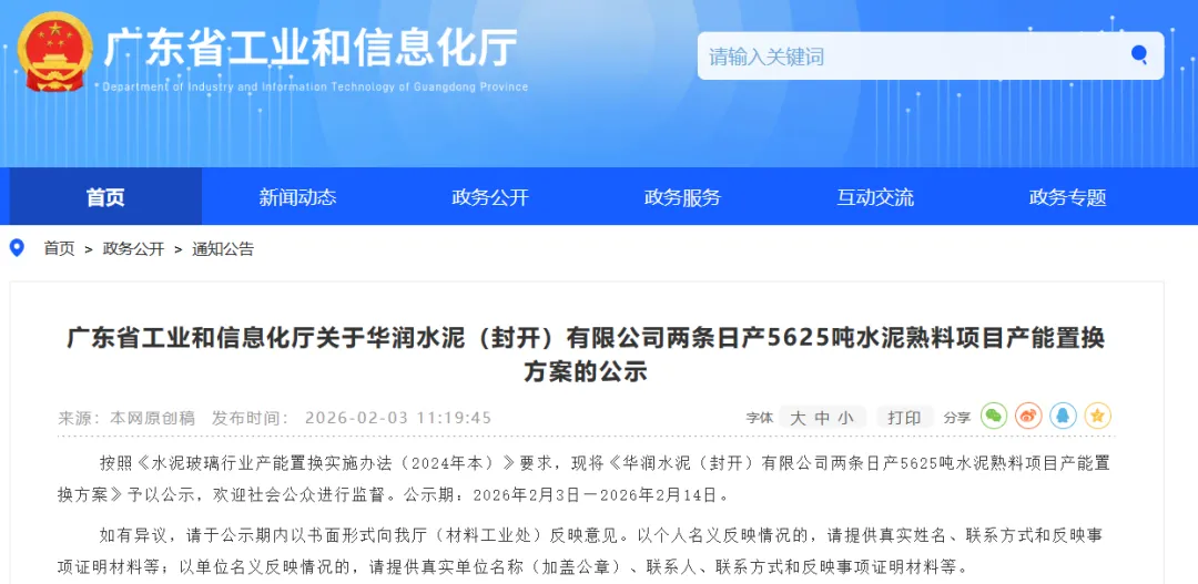 ◆公示完毕!这条4500t/d熟料生产线不再建设