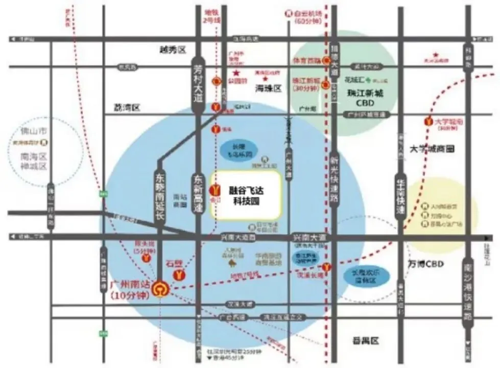 【地 铁】广州2号线会江站A出口,2站直达广州南站,可快速换乘广州7号线直达大学城,以及换乘佛山地铁2号线;距广州地铁22号线陈头岗站仅1.5公里。
