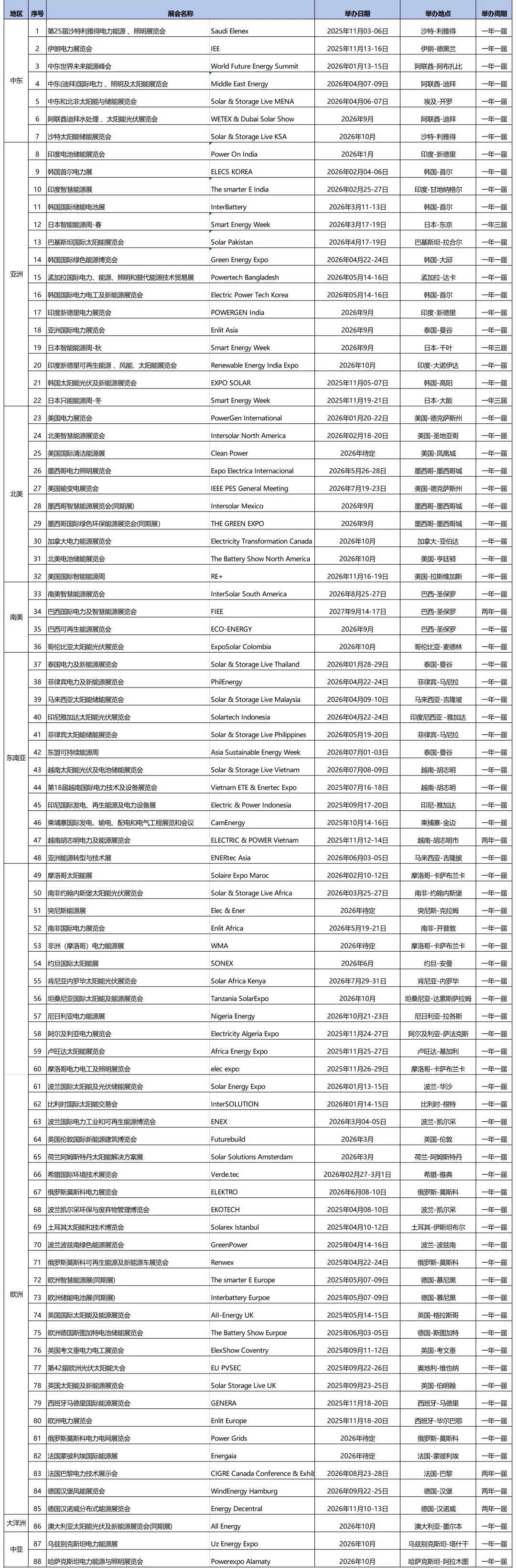 2026年全球热门新能源电力光伏太阳能展会计划表