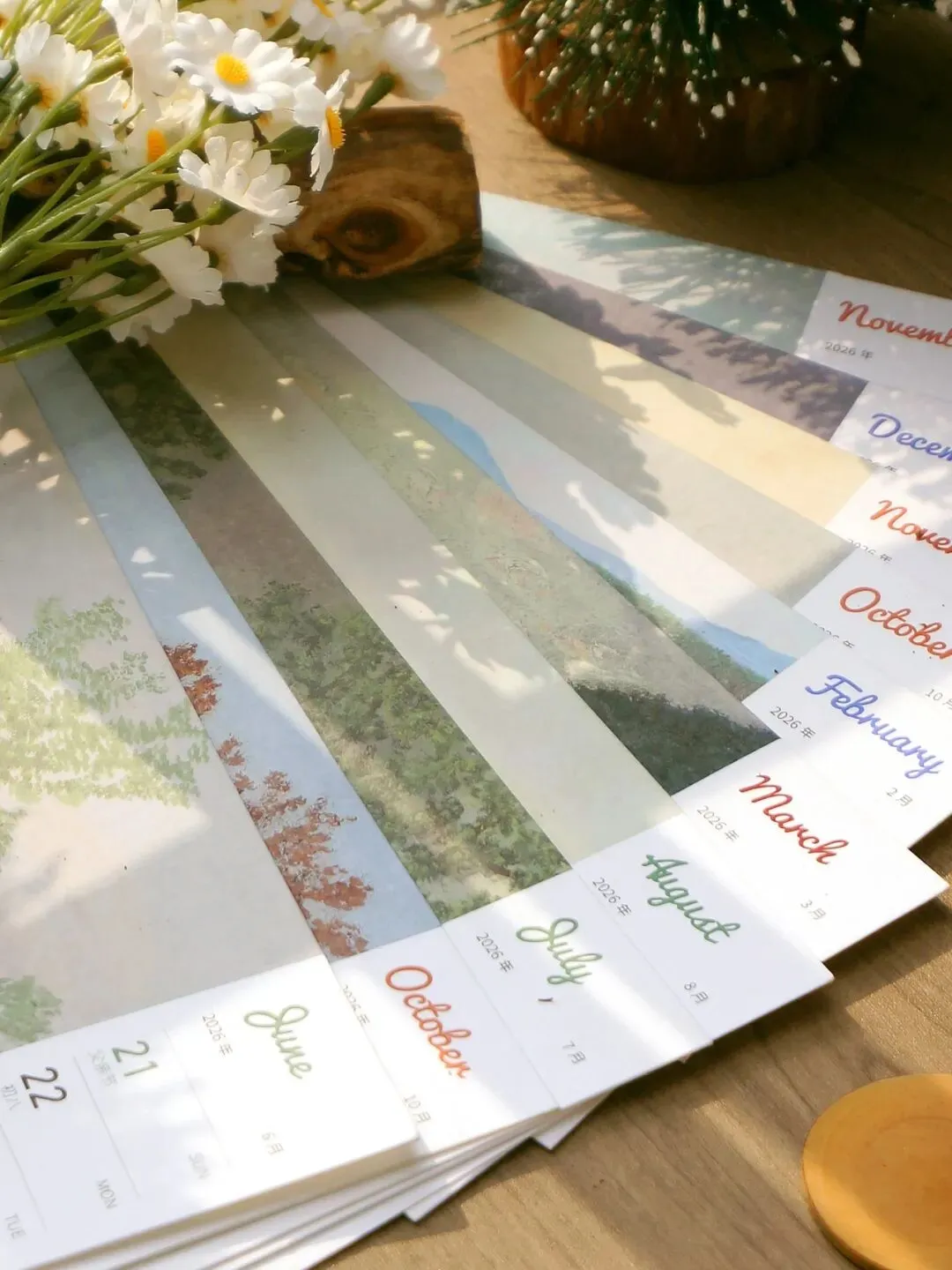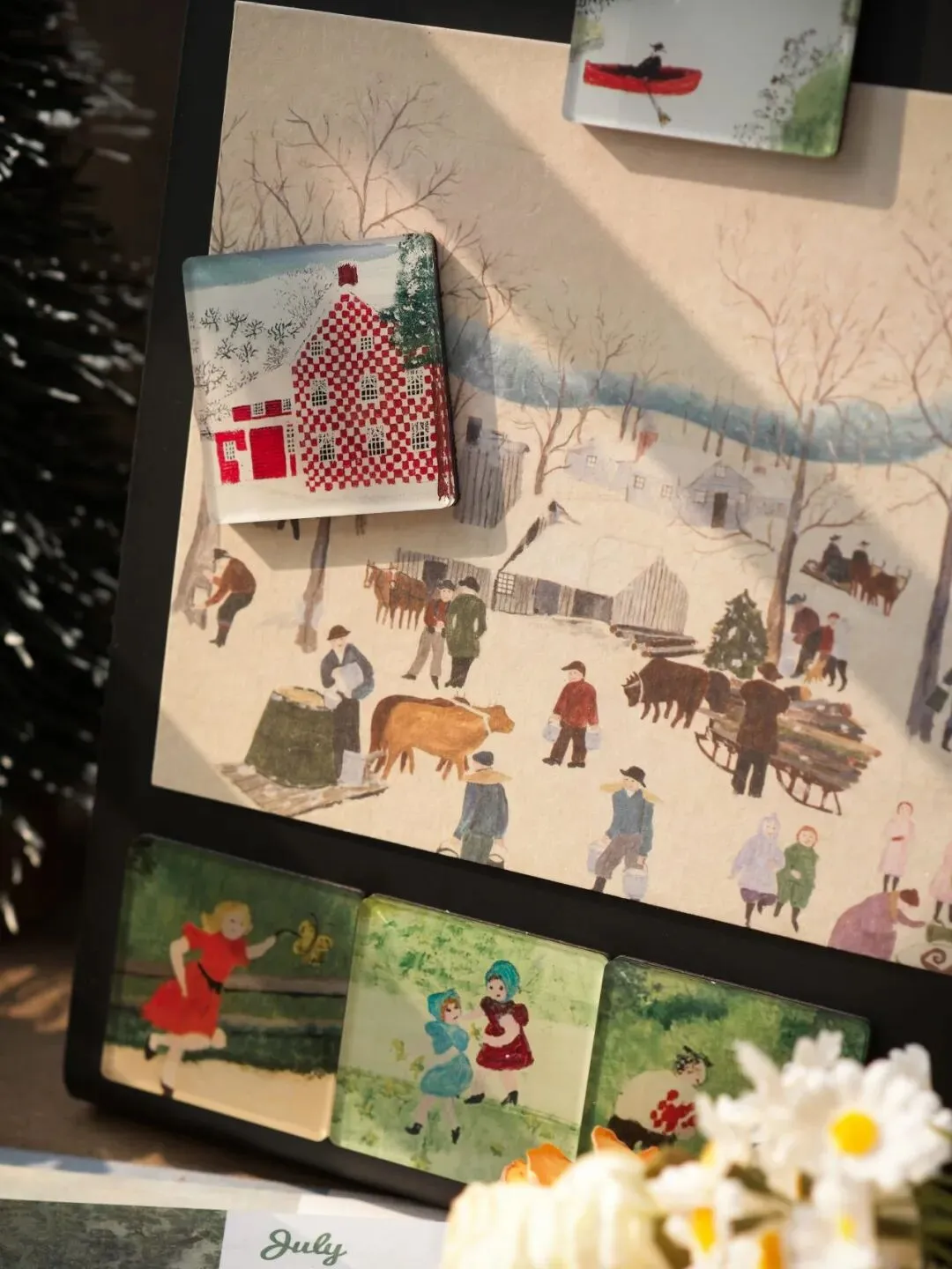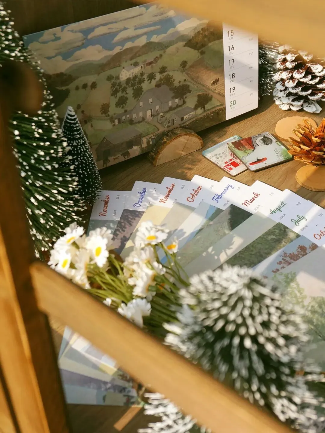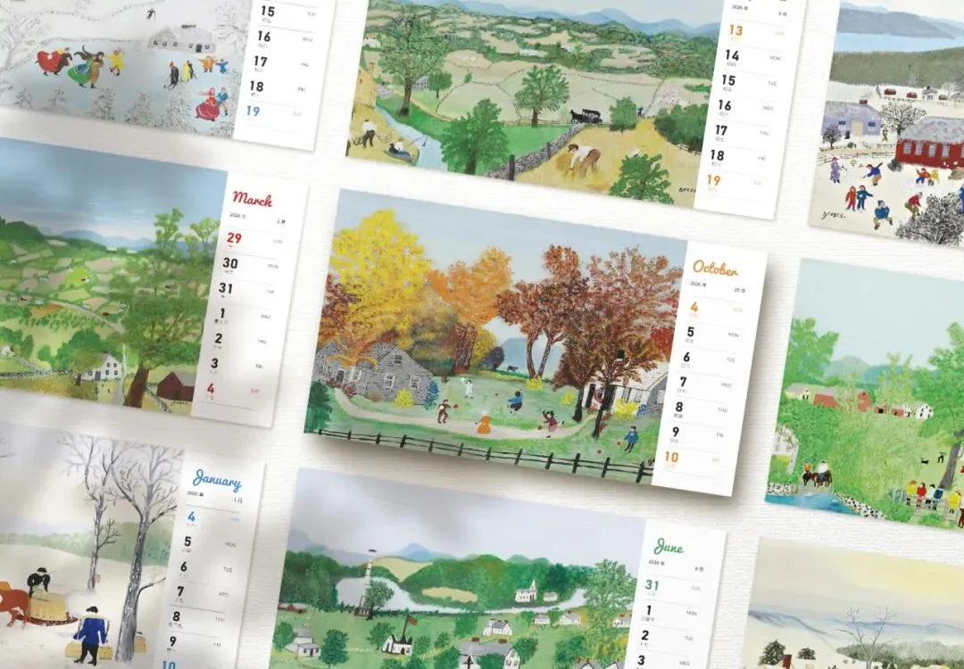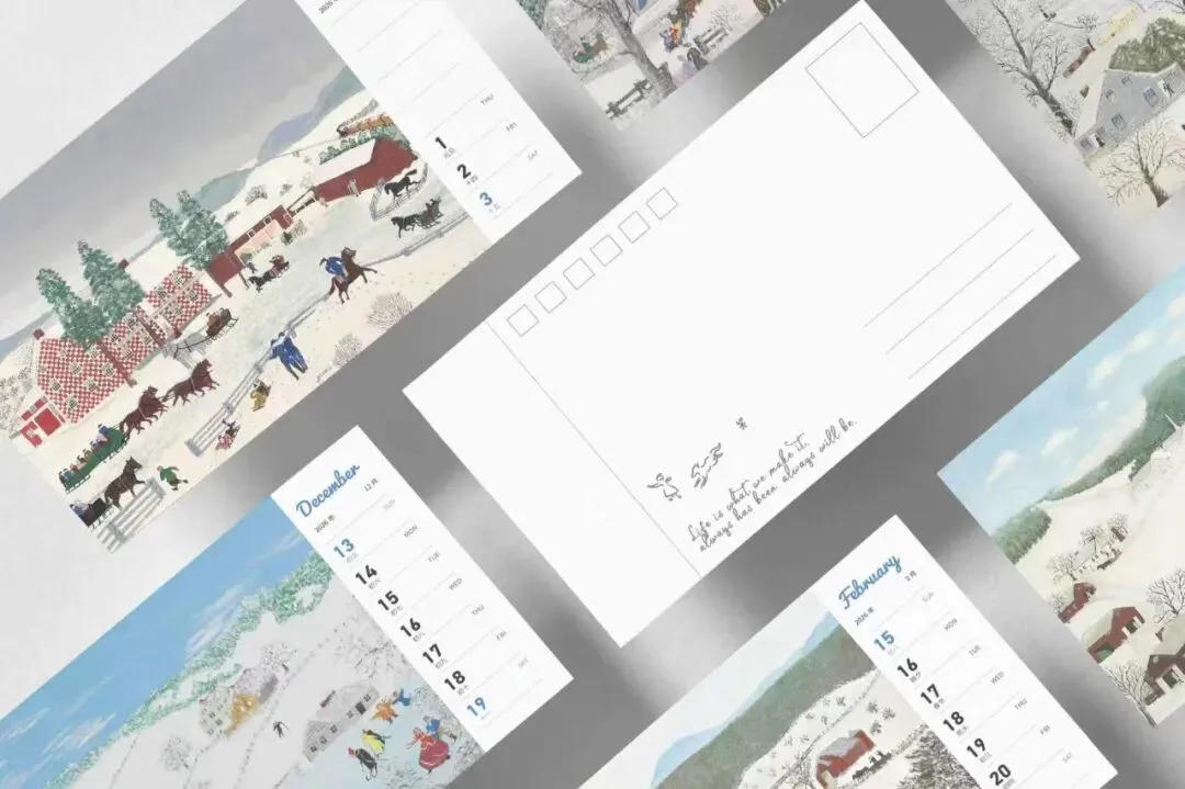 这是一套以摩西奶奶绘画为灵感制作的四季插画周历。
