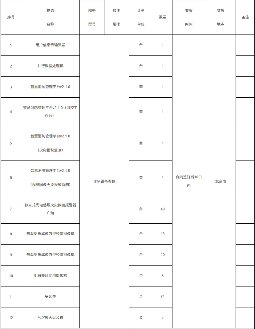 项目概况:用户信息传输装置、并行数据处理机、智慧消防管理平台v2.1.0、智慧消防管理平台v2.1.0(消控工作台)、智慧消防管理平台v2.1.0、火灾报警监测、智慧消防管理平台v2.1.0、频图像火灾报警监测、独立式光电感烟火灾探测报警器广角、测温型热成像筒型经济摄像机、测温型热成像筒型经济摄像机、明厨亮灶专用摄像机、安装费、气溶胶灭火装置。