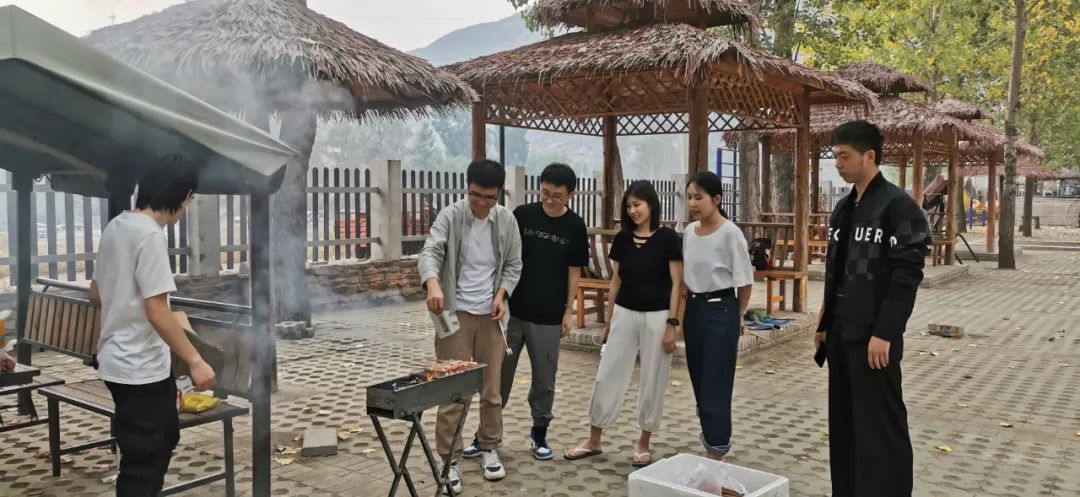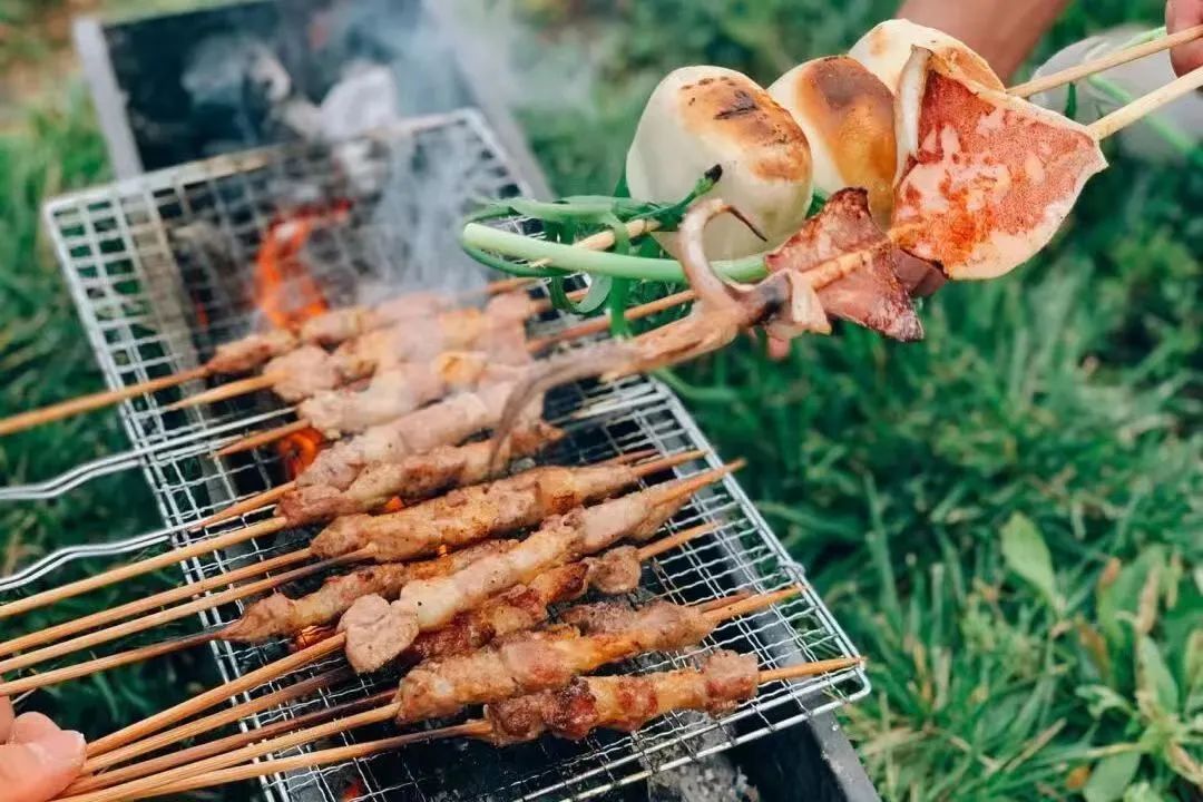 一切准备就绪,小伙伴们熟练地加炭和架起烧烤网,趁着旺盛的炭火食物开始上架了专注的神情、娴熟的手法翻面,撒上椒盐孜然,刷上烧烤酱小伙伴们的架势丝毫不逊色专业水平。