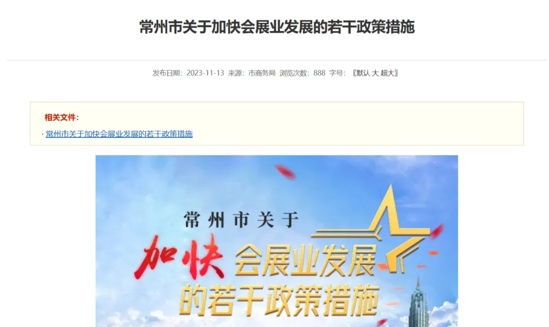 《常州市关于加快会展业发展的若干政策措施》(2023 年 11 月发布,长期有效)