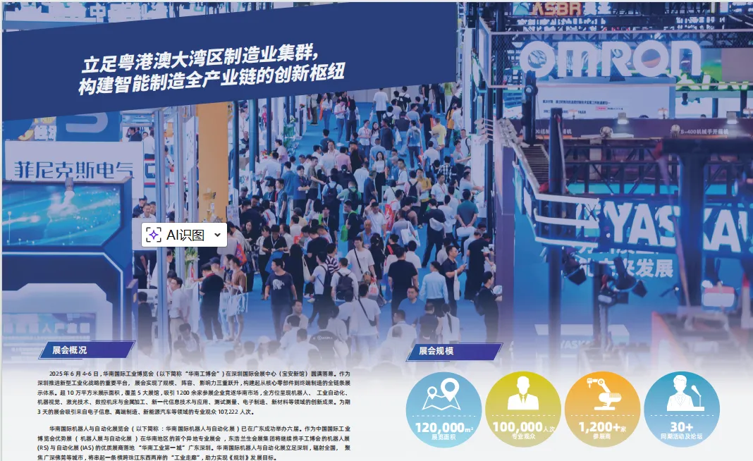2025年6月4-6日,华南国际工业博览会(以下简称“华南工博会”)在深圳国际会展中心(宝安新馆)圆满落幕。作为深圳推进新型工业化战略的重要平台,展会实现了规模、阵容、影响力三重跃升,构建起从核心零部件到终端制造的全链条展示体系。超10万平方米展示面积,覆盖5大展馆,吸引1200余家参展企业竞逐华南市场,全方位呈现机器人、工业自动化、机器视觉、激光技术、数控机床与金属加工、新一代信息技术与应用、测试测量、电子制造、新材料等领域的创新成果。为期3天的展会吸引来自电子信息、高端制造、新能源汽车等领域的专业观众107,222人次。
