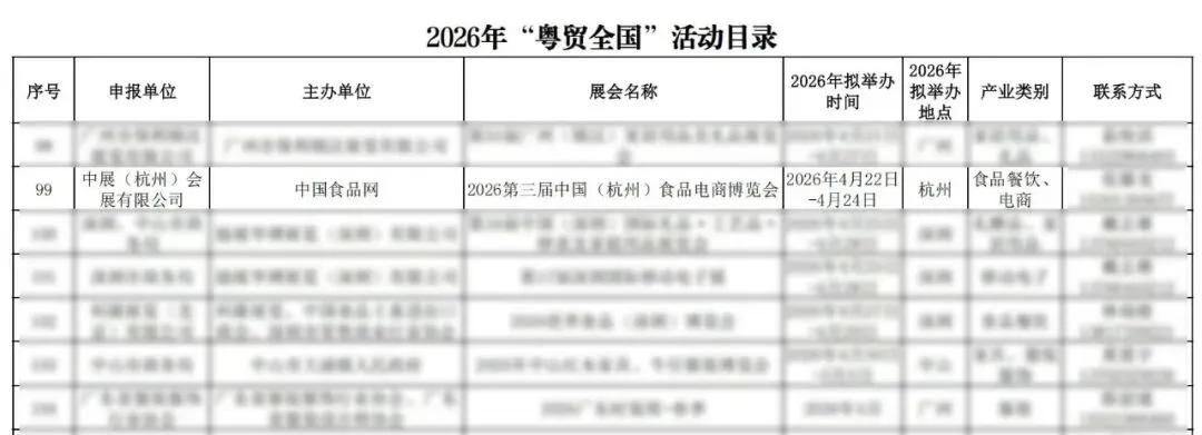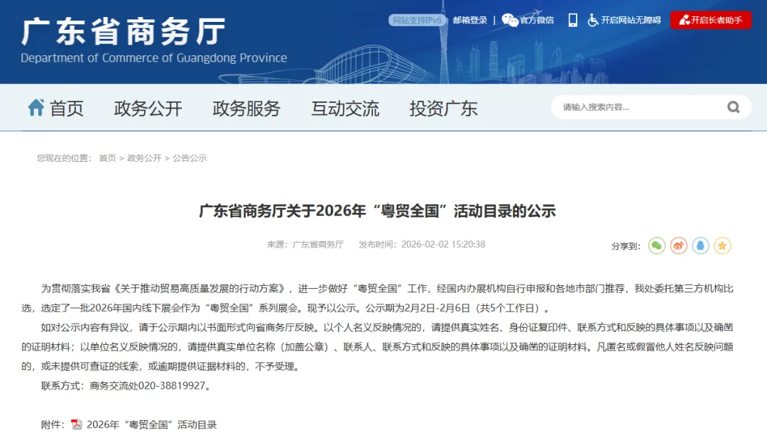 关于2026年“粤贸全国”活动目录的公示