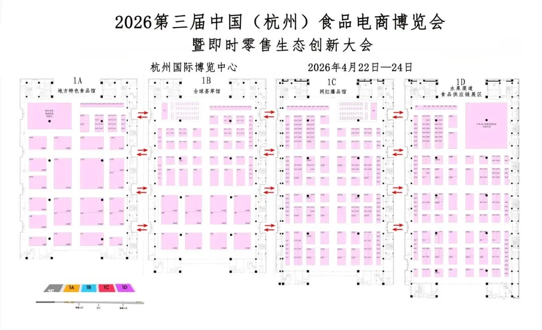 第三届中国(杭州)食品电商博览会暨即时零售生态创新大会(简称CFEE·中食e展),将于2026年4月22-24日在杭州国际博览中心举办,展览面积超5万平方米,预计吸引10万+专业观众参与。