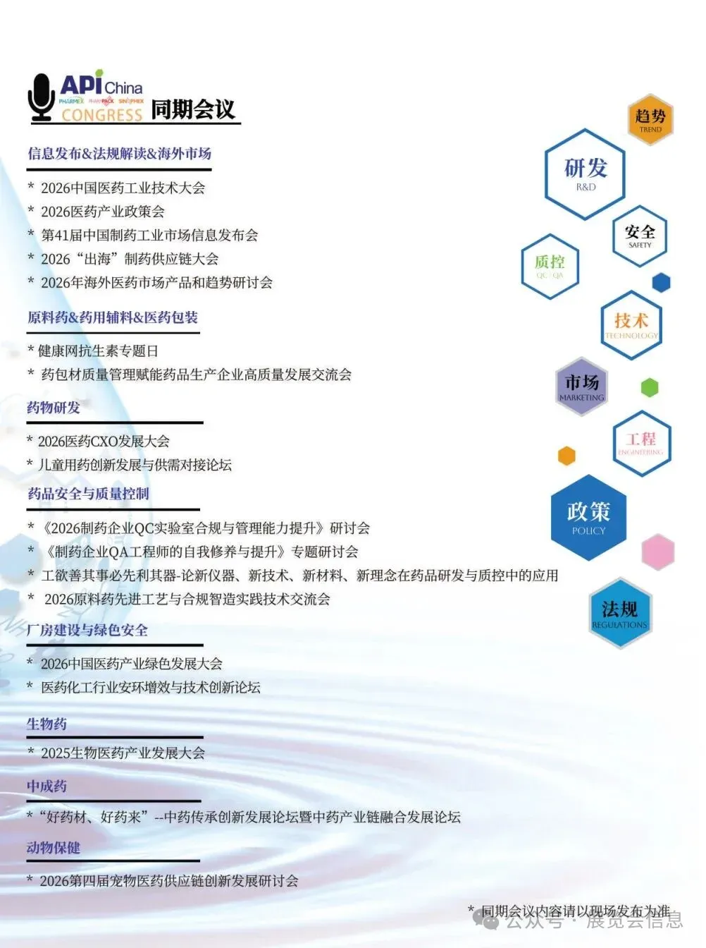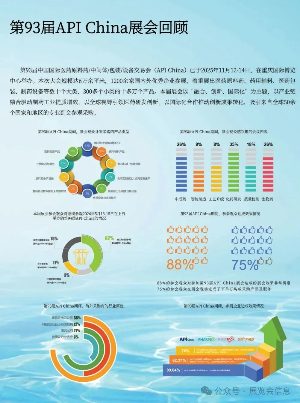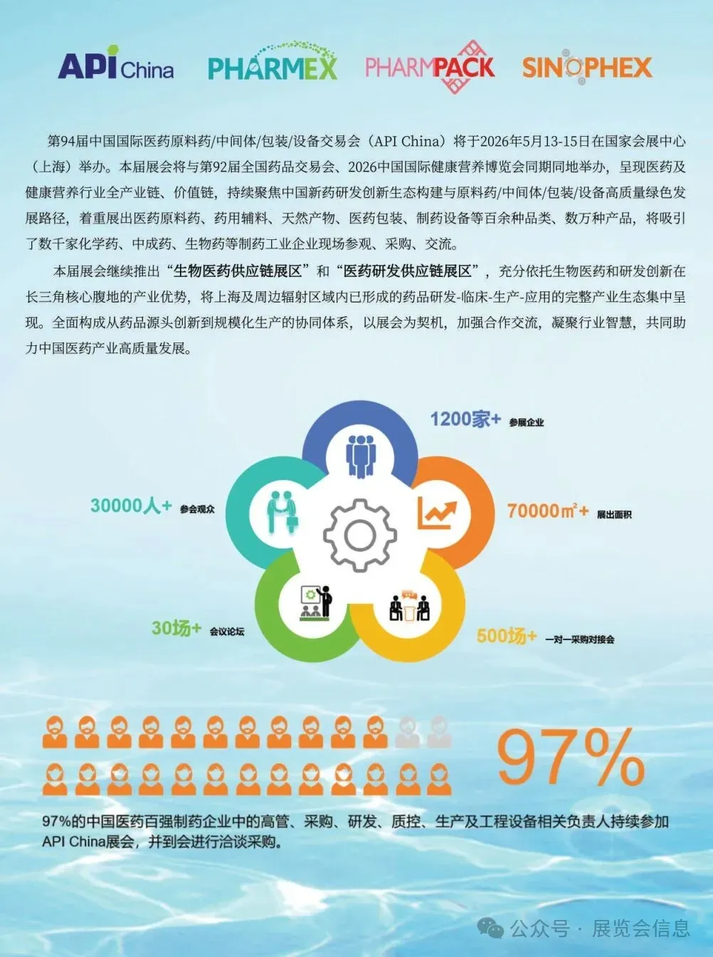第94届中国国际医药原料药/中间体/包装/设备交易会(API China)将于2026年5月13-15日在国家会展中心(上海)举办。本届展会将与第92届全国药品交易会、2026中国国际健康营养博览会同期同地举办,呈现医药及健康营养行业全产业链、价值链,持续聚焦中国新药研发创新生态构建与原料药/中间体/包装/设备高质量绿色发展路径,着重展出医药原料药、药用辅料、天然产物、医药包装、制药设备等百余种品类、数万种产品,将吸引了数千家化学药、中成药、生物药等制药工业企业现场参观、采购、交流。