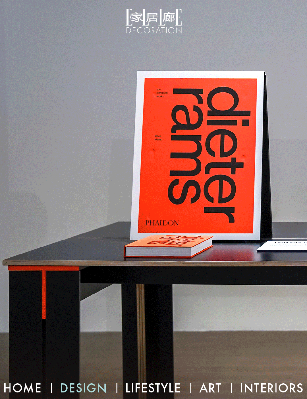 这种意识在本次上海站展览的搭建方式中得到了直观的实践:现场桌椅全部采用可回收材质,区别于“装订”组合,这些特殊板材以类似榫卯结构的方式镶嵌固定,衔接处呈现出一抹颇具拉姆斯特色的橘红,远观好像一件有趣的乐高作品,又好像是对蒙德里安或意大利设计师Ettore Sotsass的致敬。布展仅耗时半天,而撤展后的打理也不会造成额外的资源浪费。