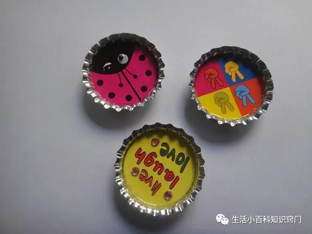 除了这种简单的,还有使用啤酒盖画画的方法,将啤酒盖上面涂抹一层需要的颜料,然后绘画就可以了,朋友选择的颜料是乙烯,颜色比较好看,也不怕水,使用起来效果不错,制作出来的手工艺品还真的挺好看的。