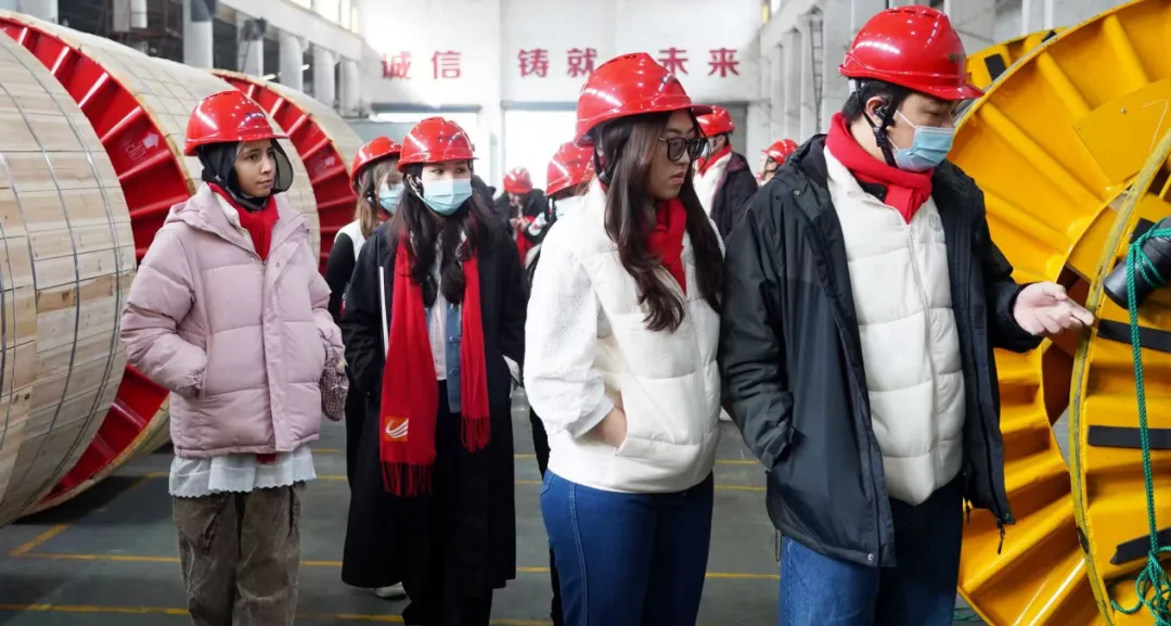 2月2日,项目全体师生前往江苏宜兴,走进江南电缆总部开展企业研学活动。出发前,同学们就对将课堂所学应用于真实生产场景充满期待。走进工厂后,曾在课堂上学习的专业词汇、流程描述和行业知识变得具体而生动,语言学习与产业实践在这一刻实现了深度融合。