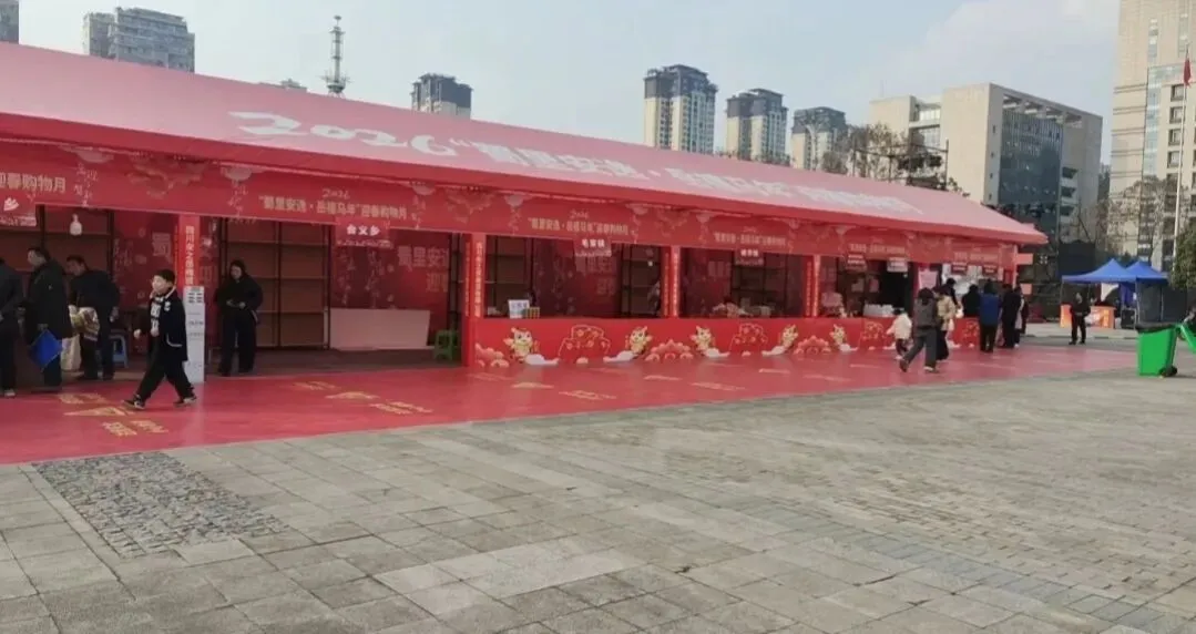 近期普州文化广场举办展销会,现场人声鼎沸,外地商户凭借大喇叭循环吆喝、现场演示等方式,成功吸引大量人流驻足围观,展位前摩肩接踵。