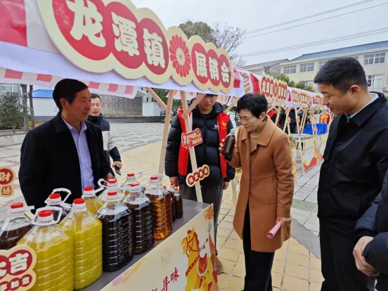 本次活动在聚焦乡村春晚的同时,在镇文化广场举办了特色产品展销会。展销会集中展示了龙潭镇的纺织新产品、生态甲鱼、金丝皇菊、再生香稻米、双黄咸鸭蛋、瓜蒌子等特色产品,为本土优质特产提供了展示窗口,搭建了产销对接的桥梁,有效激发了消费助农的热情。