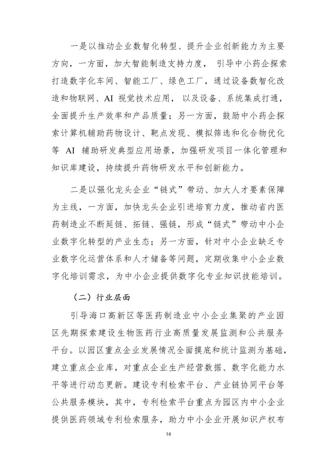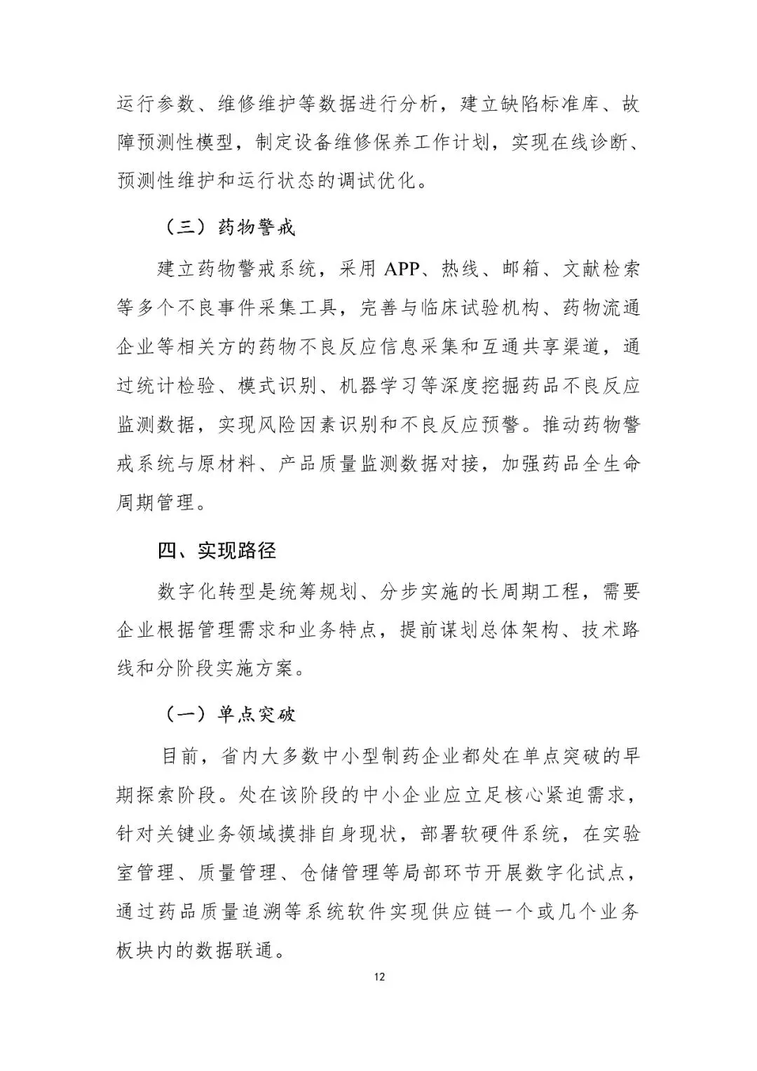 | 医药制造业 | 2. 全过程质量追溯 3. 数字化生产与在线质量管控(PAT技术) 4. 药物警戒系统 | 路径 保障:政府支持AI研发与智能制造;园区搭建公共服务平台。 | |