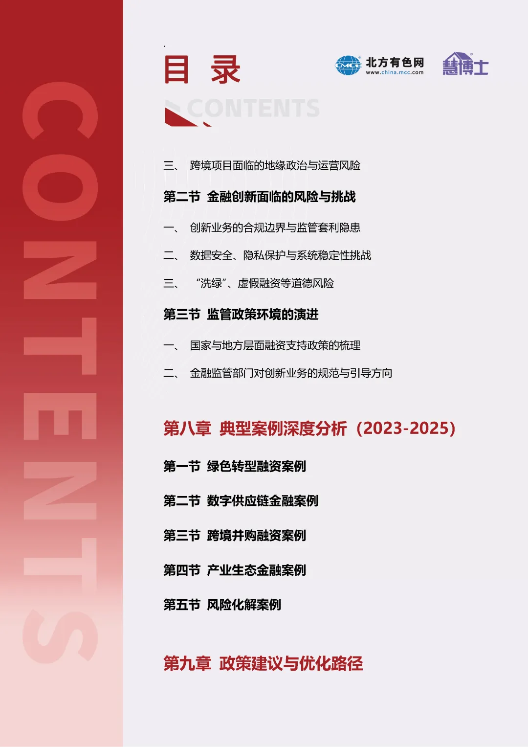 我们期望本报告能够为有色金属企业、金融机构、投资机构及相关政策部门提供一份全面的融资导航与创新参考,助力构建更高效、更适配、更可持续的行业产融结合新生态,共同支撑有色金属行业实现稳增长与绿色转型的战略目标。