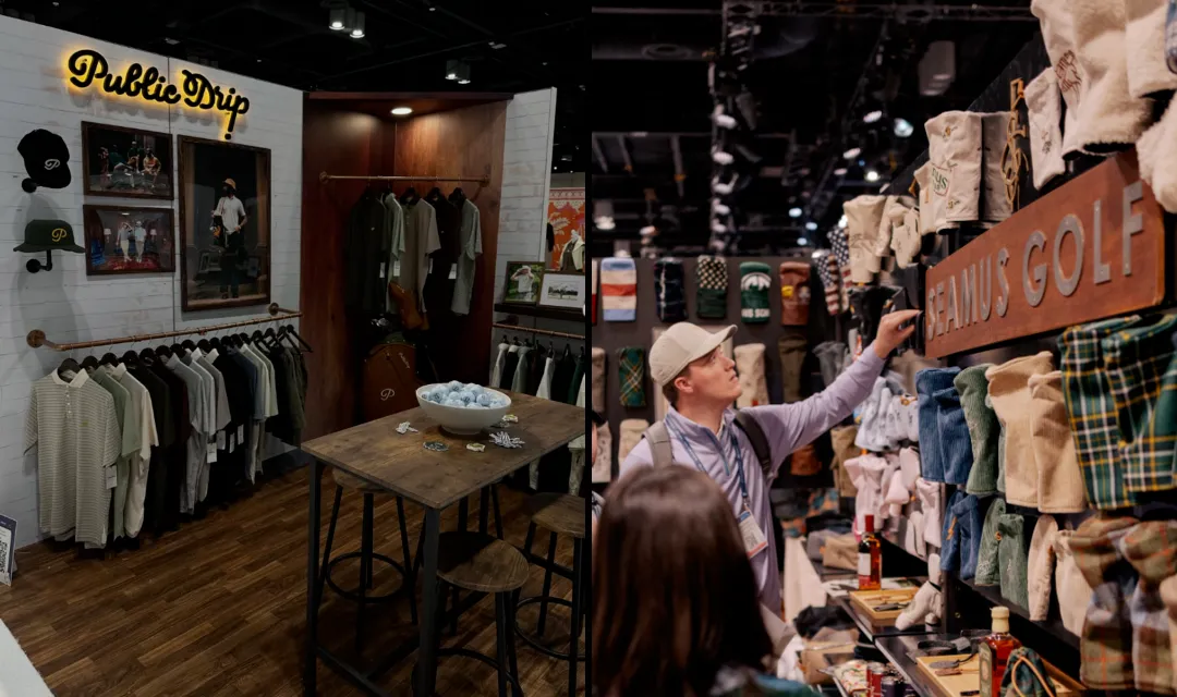 服饰展区,adidas、Nike、Under Armour、lululemon 等大型高尔夫服饰品牌持续发力,同时,一些新兴服饰品牌从时尚、艺术和日常生活中汲取灵感,让高尔夫不再遥不可攀:Public Drip 将高尔夫服饰与纽约街头风格相融合,Seamus Golf 则加入了美式牛仔元素,Tilley Sport 风格清新甜美,Fore All 展现阳光休闲魅力……