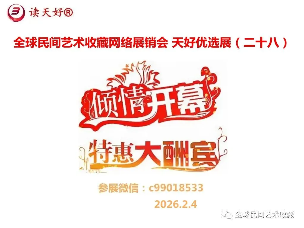 网络展销地址:《全球民间艺术收藏》《天好文化》,《天好展销馆》前二个微信公众号每期发布展讯,直接进《天好展销馆》购买。