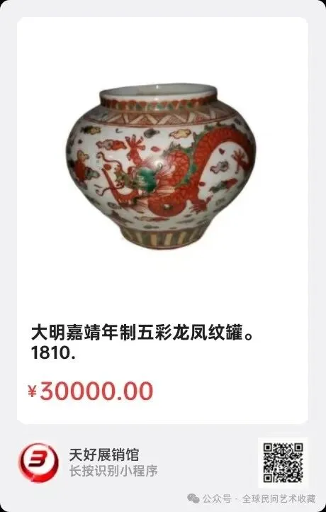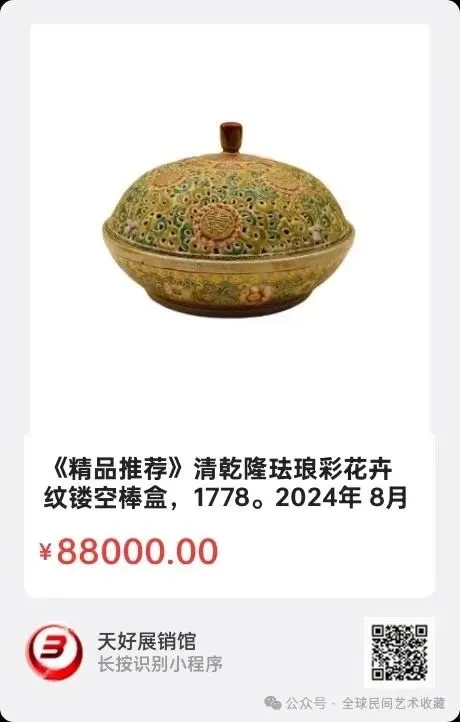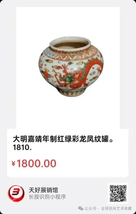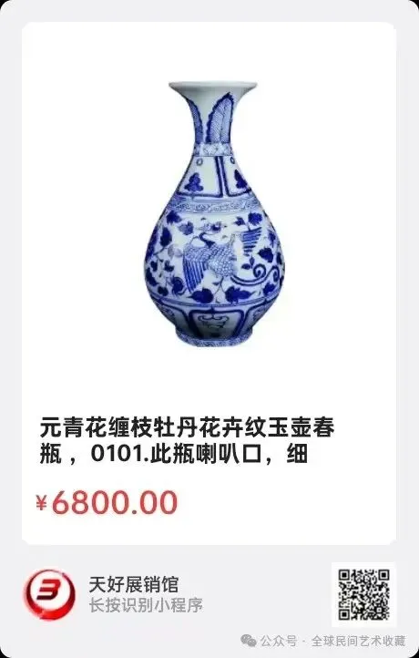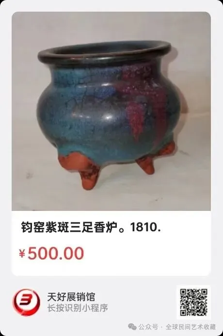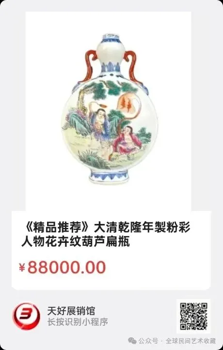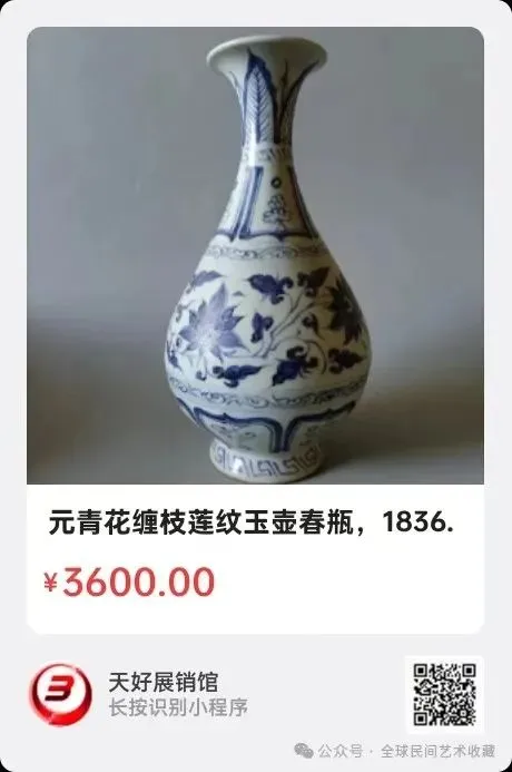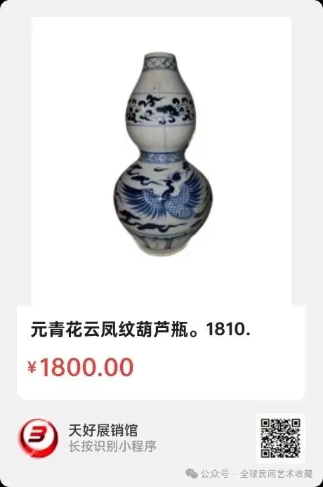 地点:《全球民间艺术收藏》《天好文化》,《天好展销馆》前二个微信公众号每期发布展讯,直接扫码进《天好展销馆》购买。