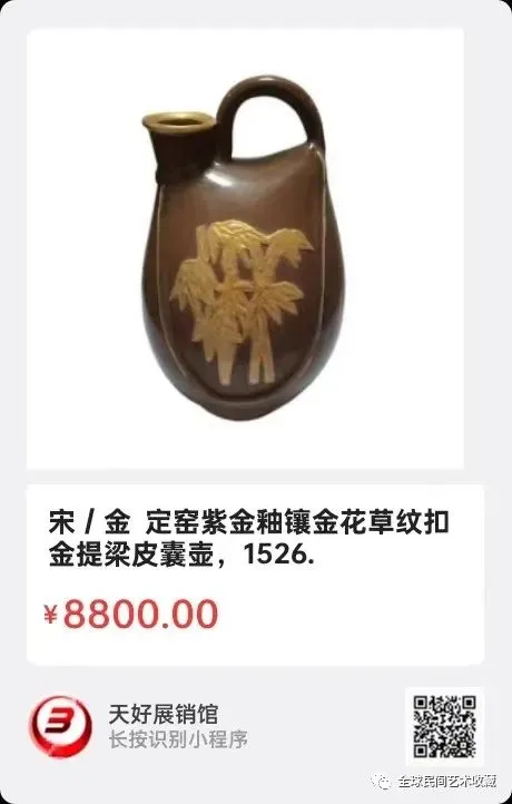 宋金金油滴梅瓶,宋代是定窑发展的鼎盛时期,汉族劳动人民的制瓷技术有许多创造和进步。北宋中后期,定窑由于瓷质精良、色泽淡雅,纹饰秀美,被宋朝政府选为宫廷用瓷,使其身价大增,产品风靡一时。釉质滋润凝厚,其上散布大小不一的油滴斑纹。油滴发色金色,油滴多呈现为金色斑点样貌,别具一格。存世少见极具收藏价值。此件宋定窑油滴梅瓶高度29cm,底款奉华,亭亭玉立,宛如一古美人儿,耀眼迷人,器身黄色斑点浓重且细腻,星点状洒落于满器上,优雅隽秀而酣畅淋漓,定窑的窑变是将器物施满釉药后放入窑炉内培烧,通过高达1300℃以上的温度,并持续相应的一段时间,根据需要掌握持续高温的长短,并以不同的方式冷却,就会产生不同效果的窑变釉,定窑的窑变釉很可能是中国北方窑变的鼻祖!个人观点仅供参考!来源1836.