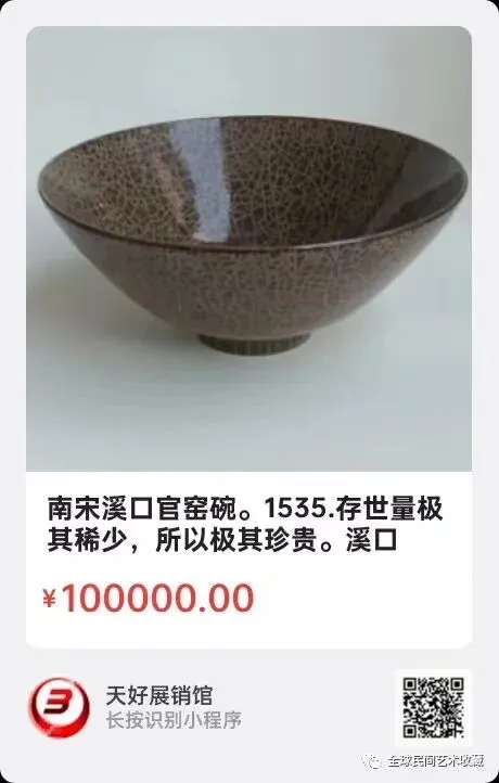 南宋溪口官窑碗。存世量极其稀少,所以极其珍贵。溪口窑釉面清透,开片纹下有渗透物,微观下如画出来的纹路,实则是开片处微翘,釉与胎在开片处略微脱离,渗进去的细灰,形成了胎上的白线。至于真假器物自己可以说话,就是用现代高科技无法仿制的就能证明它是真品是老货。高6.4口14.6底4.5。来源1535.